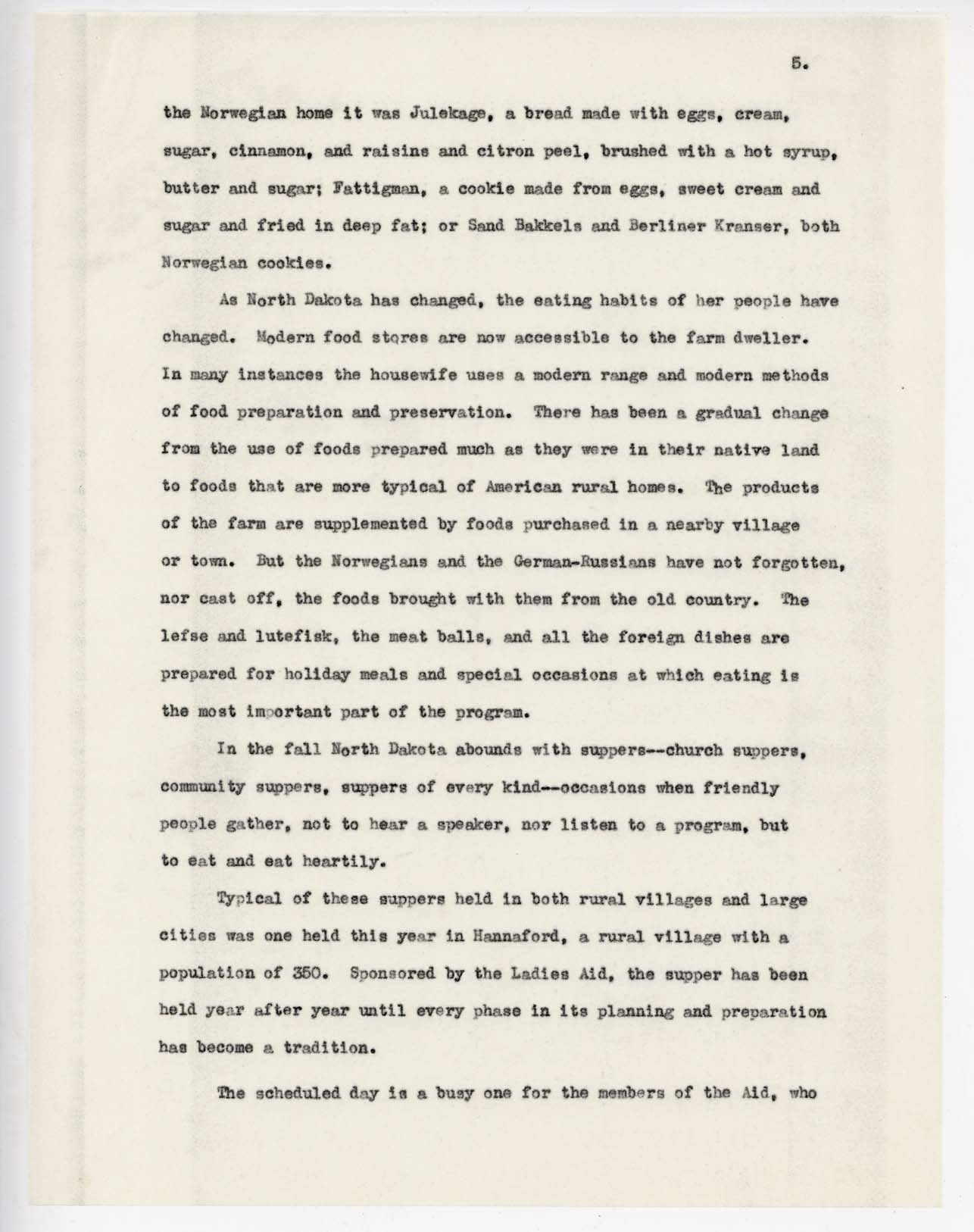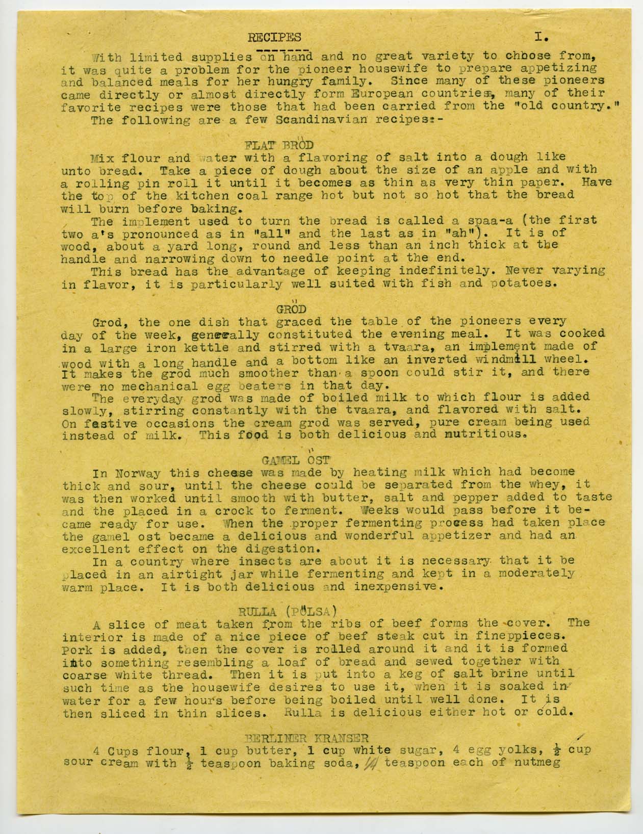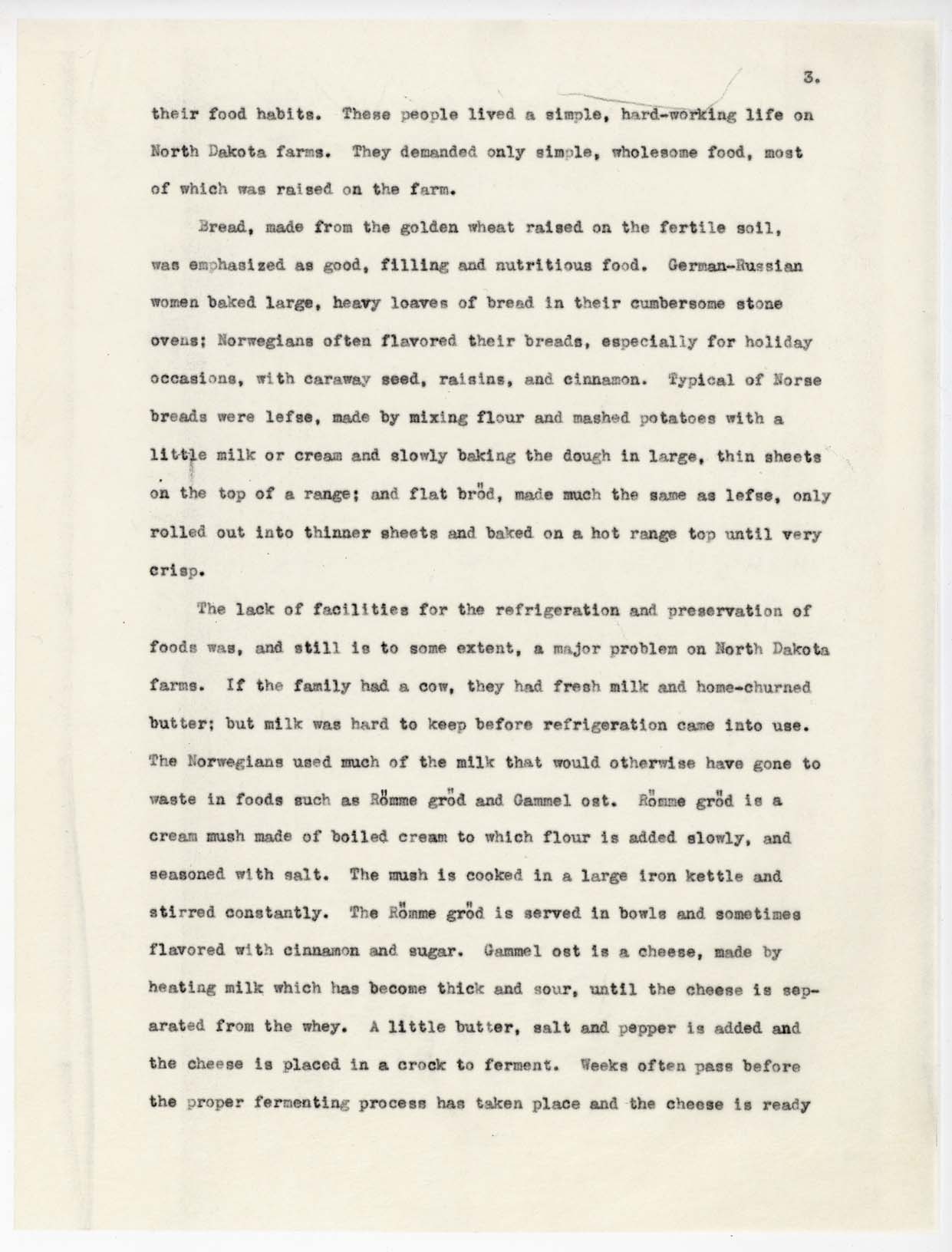 Title: Draft essay about Scandinavian recipes of pioneer housewives in North Dakota, author unknown