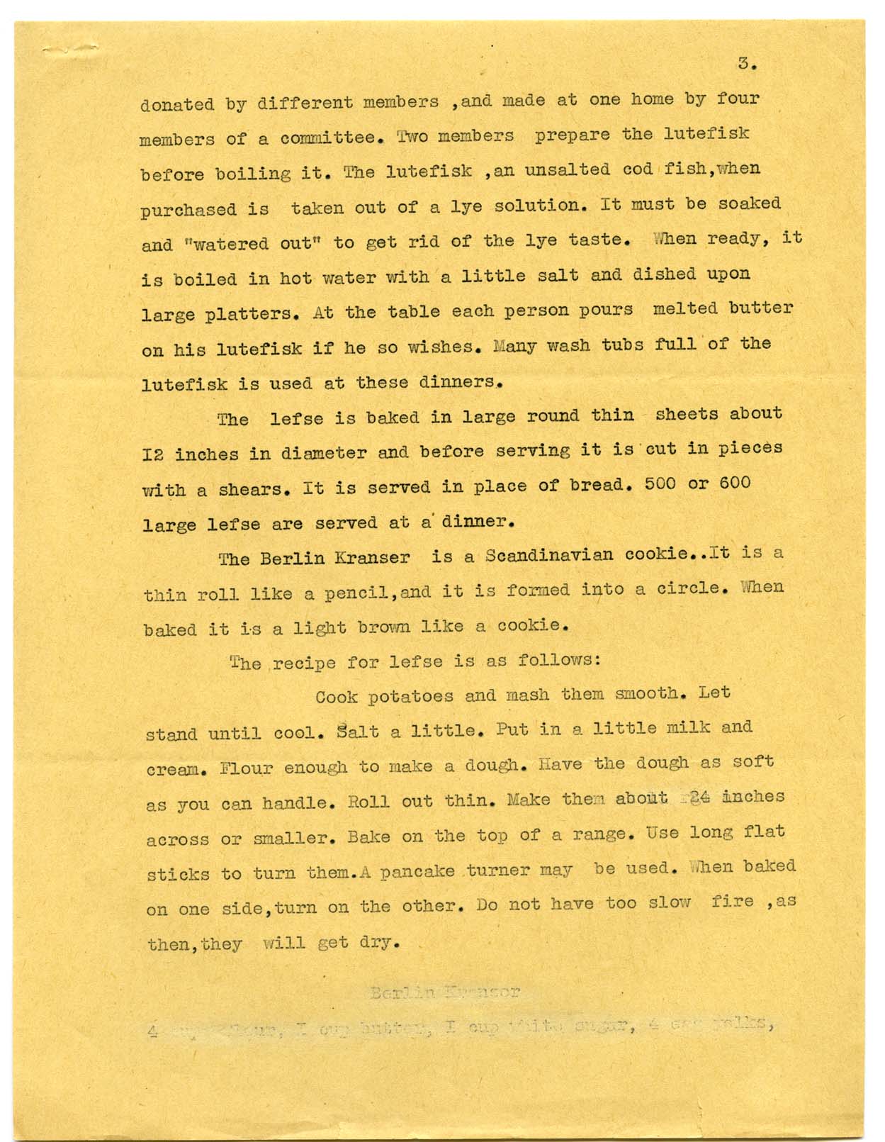 Title: Draft essay about a typical lutefisk dinner in North Dakota, by Frank