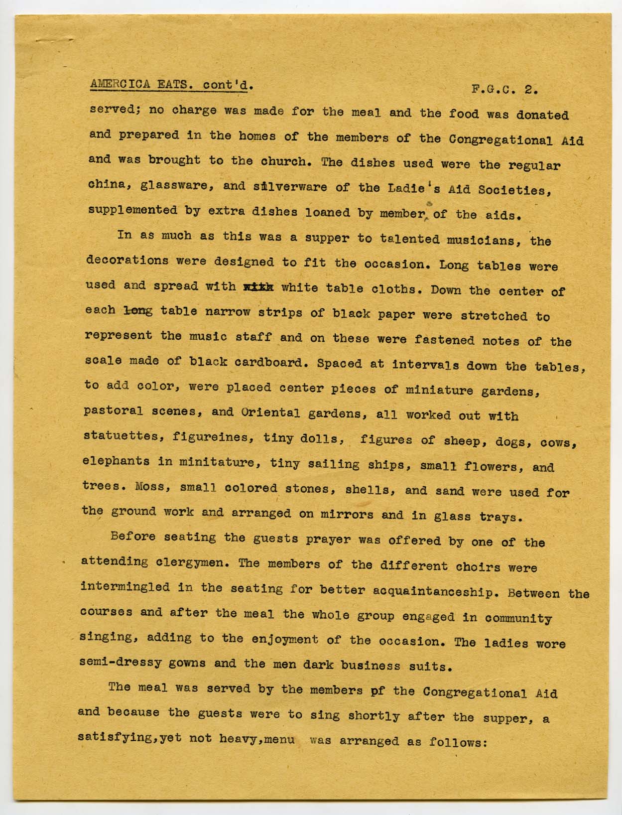 Title: Draft essay about annual church suppers in North Dakota, author unknown