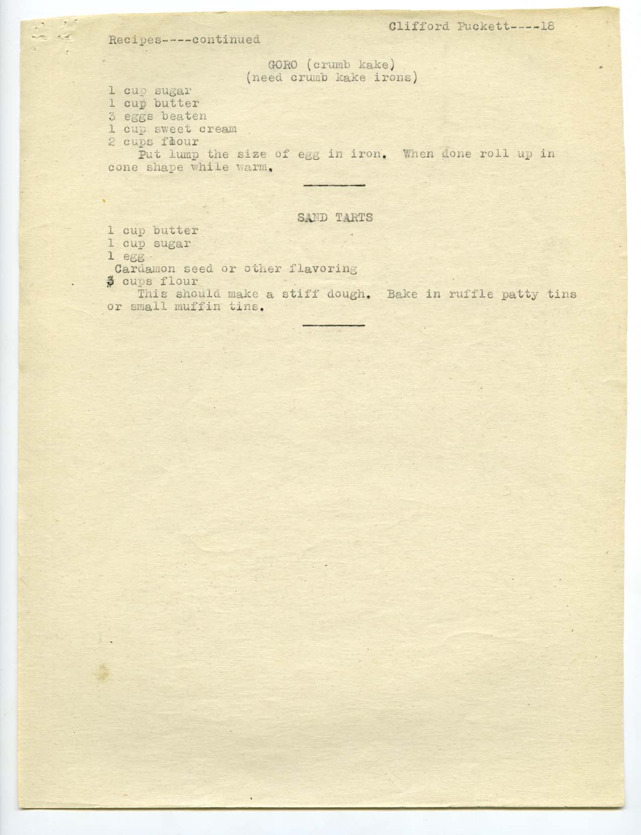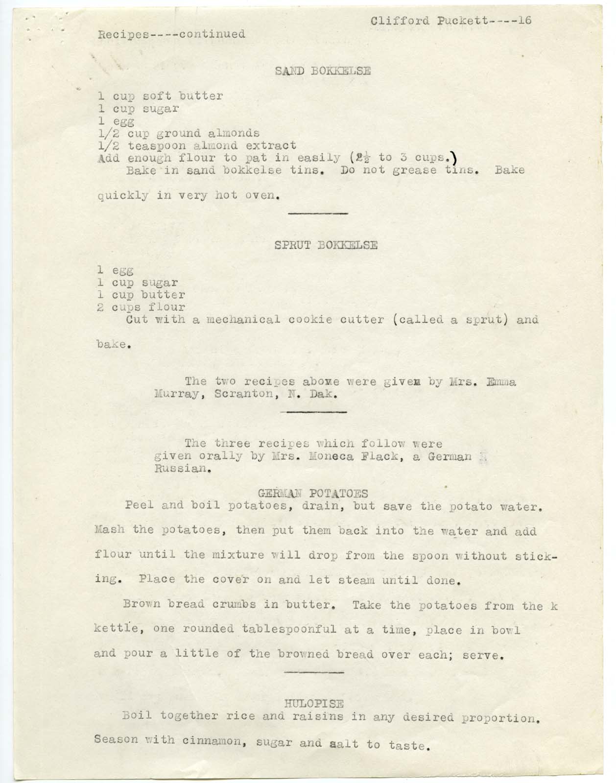 Title: Recipes, Bowman and Slope Counties, North Dakota, by Clifford Puckett
