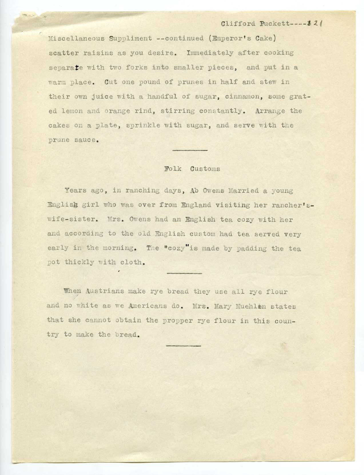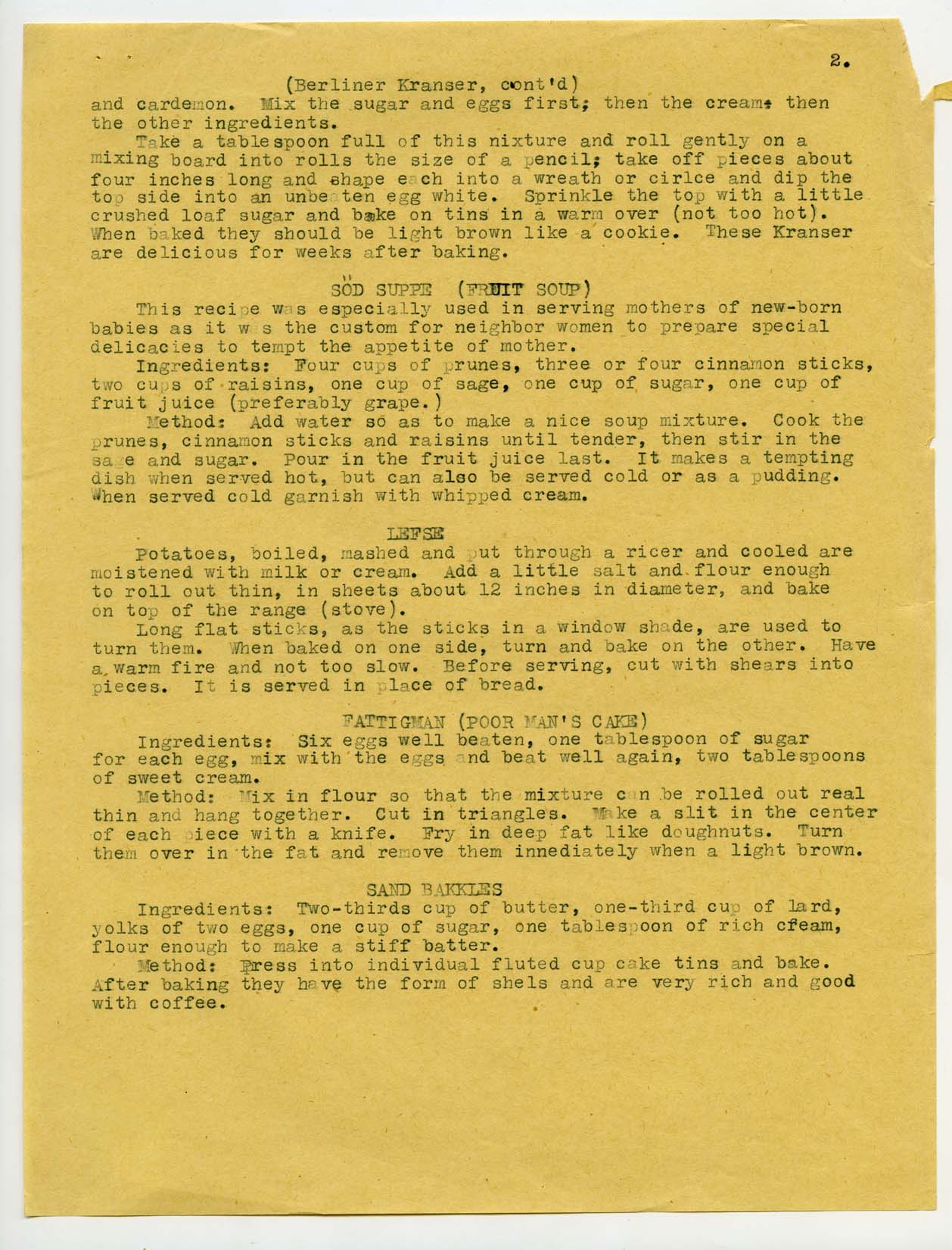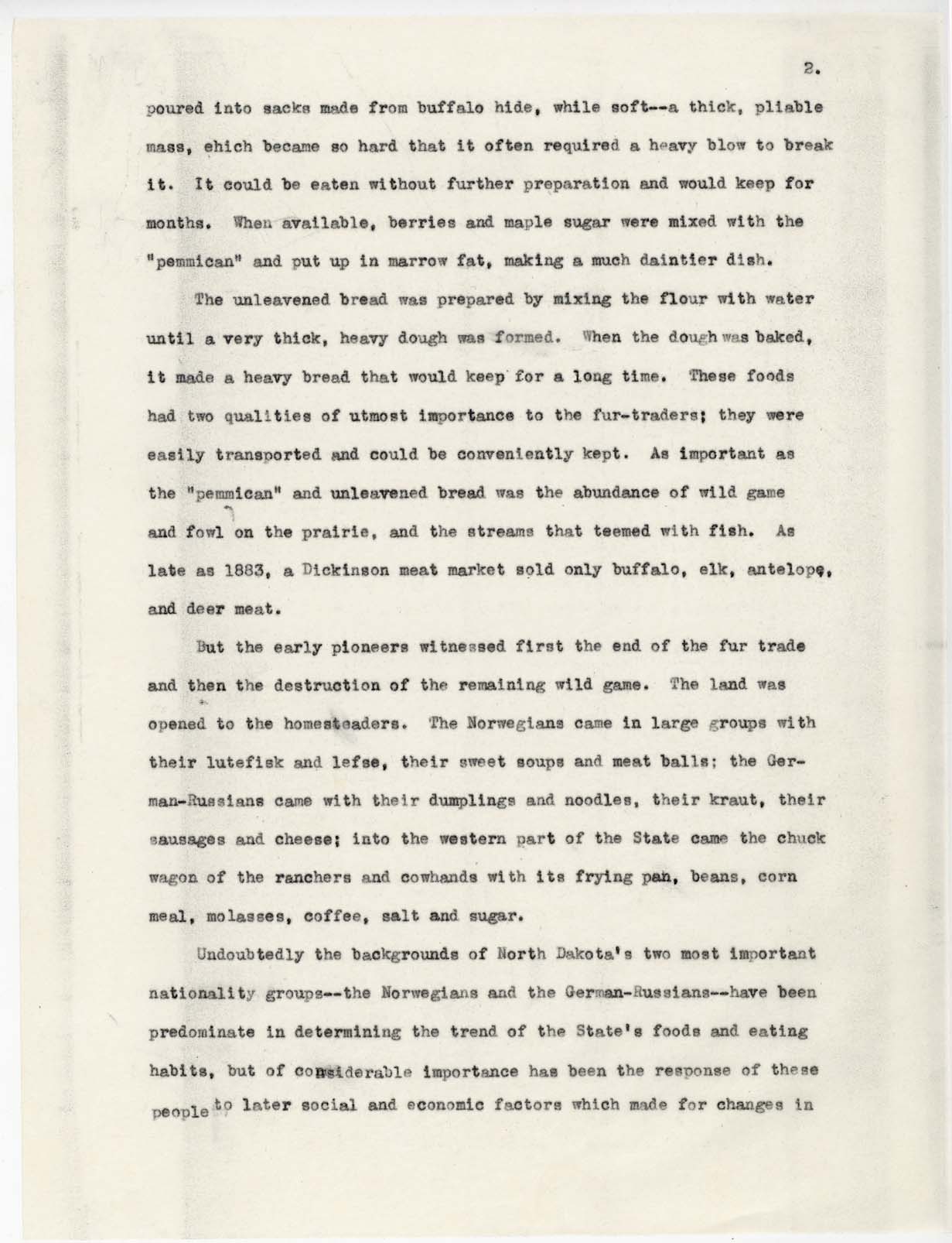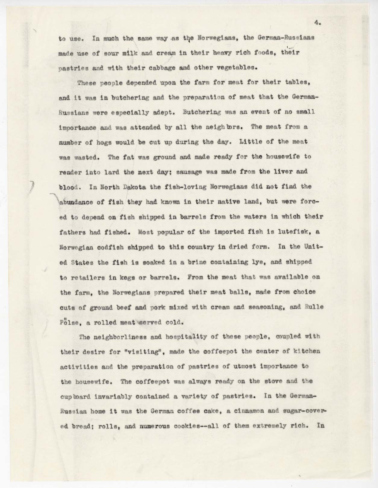 Title: Draft essay about Scandinavian recipes of pioneer housewives in North Dakota, author unknown