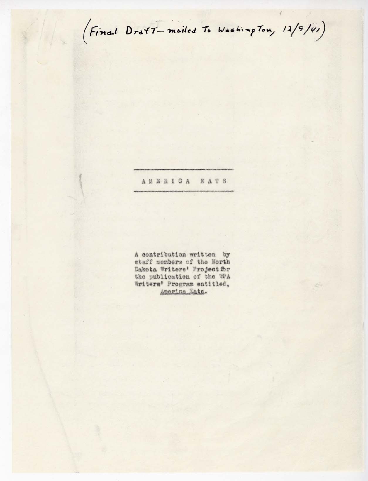 Title: Final draft of "America Eats," by the Staff of the North Dakota Writers' Project
