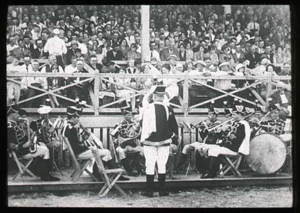 Title: Band playing, probably at the Northwest Fair, ca. 1934