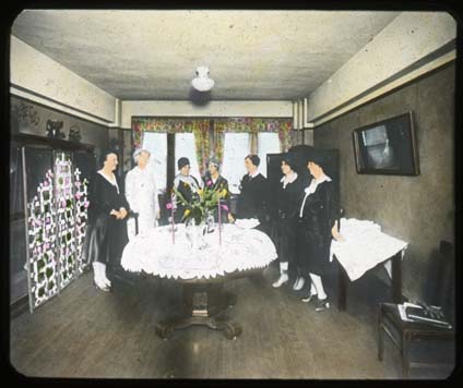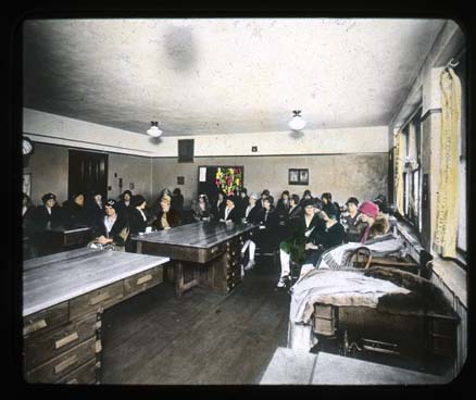 Title: Group of women inside office or school, possibly in Minot (ND), ca. 1934