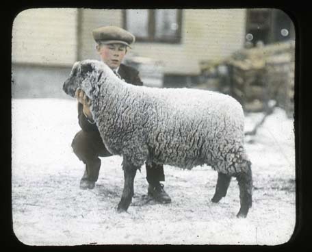 Title: Herbert Hanson with lamb purchased by the Northwest Fair, Minot (ND), ca. 1934