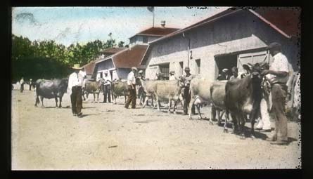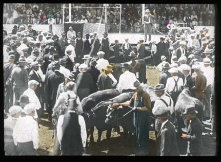 Title: Group viewing livestock, Northwest Fair, Minot (ND), ca. 1934