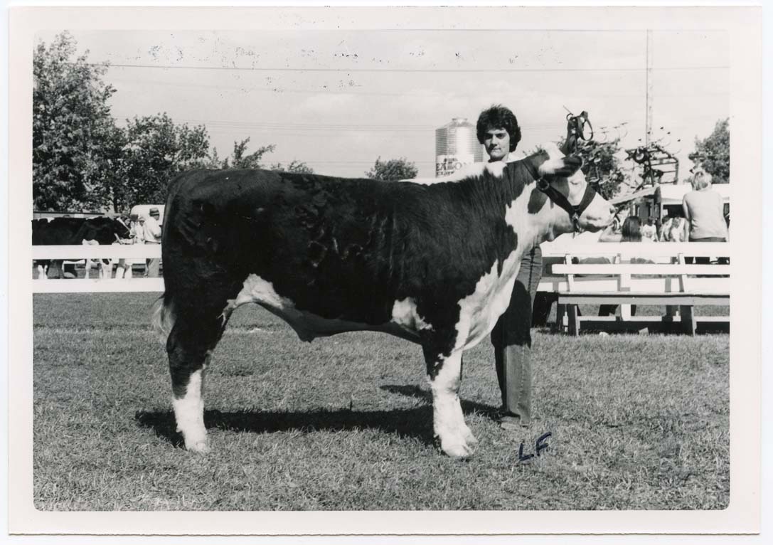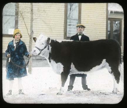 Title: Mildred Molzhon with calf purchased by Leland Hotel, ca. 1934