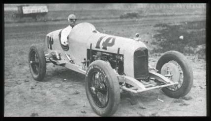Title: Man in early race car, probably near Minot (ND), ca. 1920s (might be a Landsverk photograph)