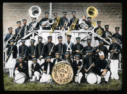 Title: Coteau Concert Band portrait, probably at Northwest Fair, Minot (ND), ca. 1920s (Landsverk photograph)