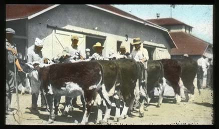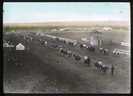 Title: Showing cattle on racetrack, Northwest Fairgrounds, Minot (ND), 1926