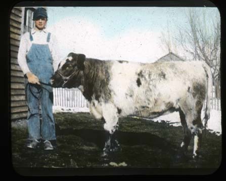 Title: Harold Winslow with Benson County Steer which was purchased by the Northwest Fair, ca. 1934