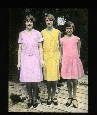 Title: Girls group style show, wash school dresses, Northwest Fair, Minot (ND), ca. 1934