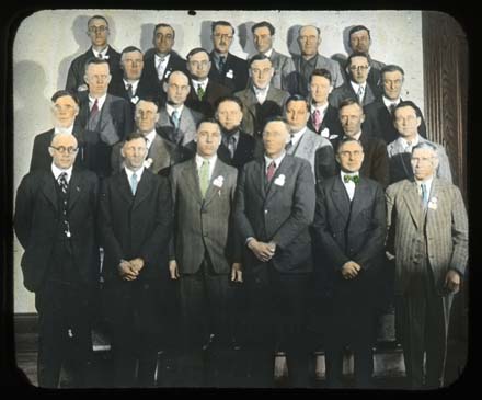 Title: Men’s group, chaperones (mostly farmers) at the Northwest Fair, Minot (ND), ca. 1934