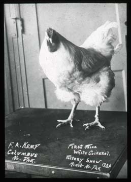 Title: First price white cockerel, F. A. Kemp, Columbus (ND), pottery show, Minot (ND), 1926