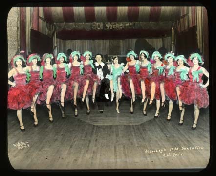 Title: “Schooley’s 1930 Sensation” (dancers) Northwest Fair, Minot (ND), ca. 1920s (H. A. Atwell photograph)