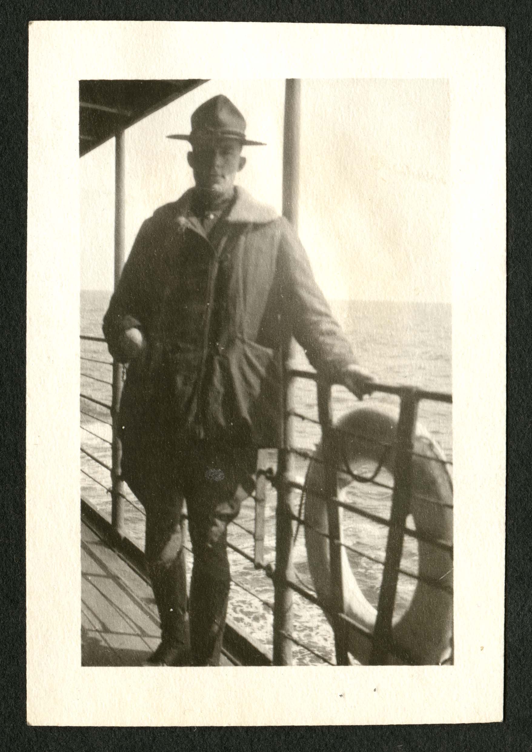 2008-P-012-p11-00005 Man in uniform standing next to rail on ship
