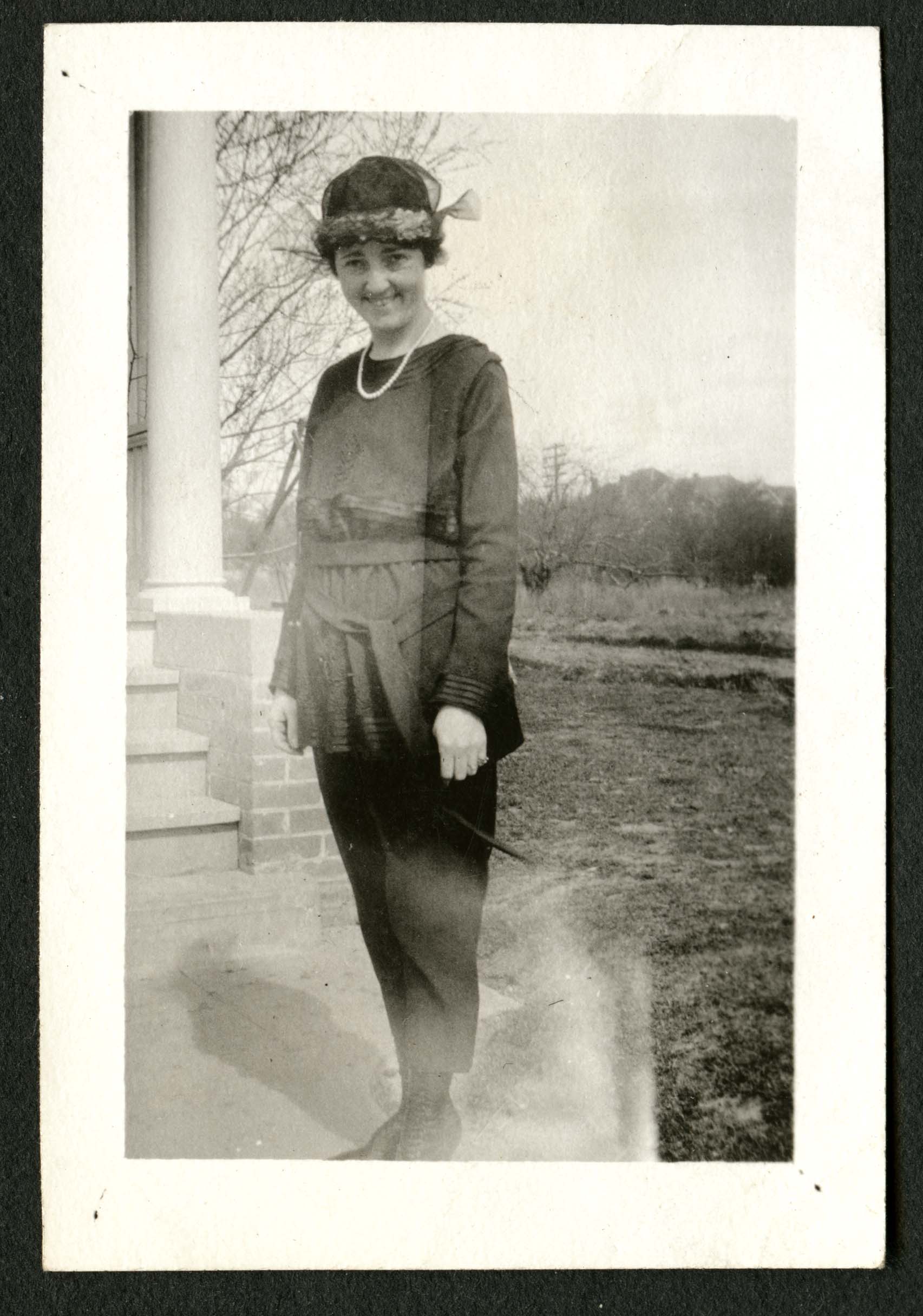 2008-P-012-p11-00007 C M Coleman standing in front of stairs and stone pillar