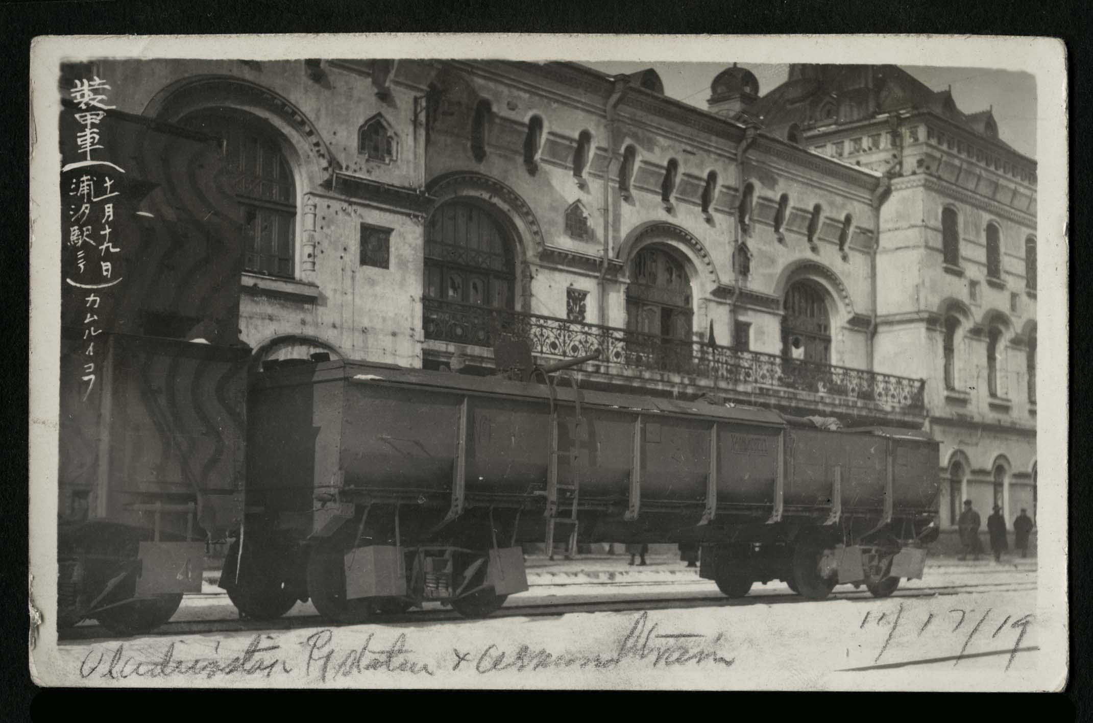 2008-P-012-p33-02 American gondola car converted to armored car Trans-Siberian Railroad Station Vladivostok 11-17-1919