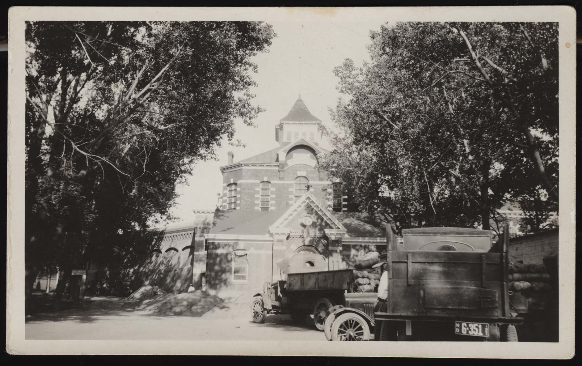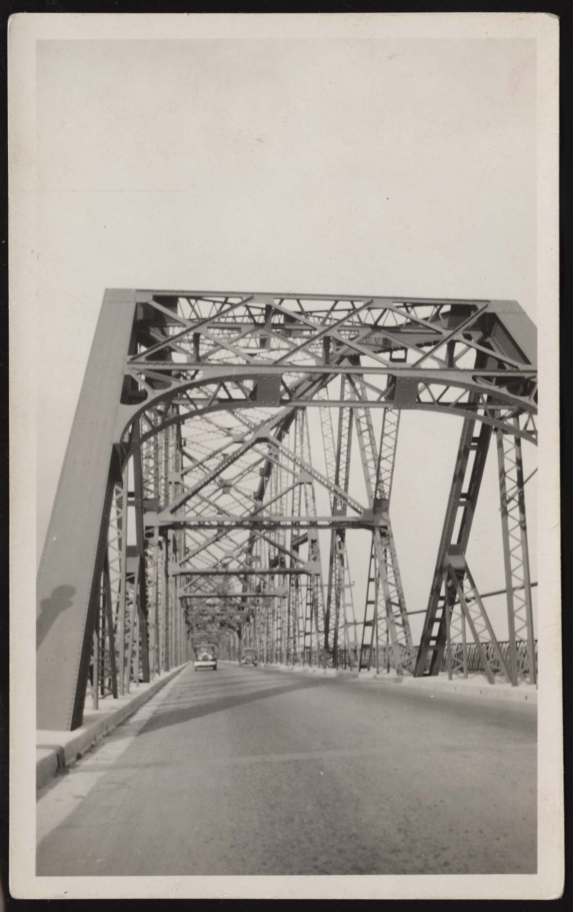 Automobiles on Liberty Memorial Bridge Bismarck ND 1927