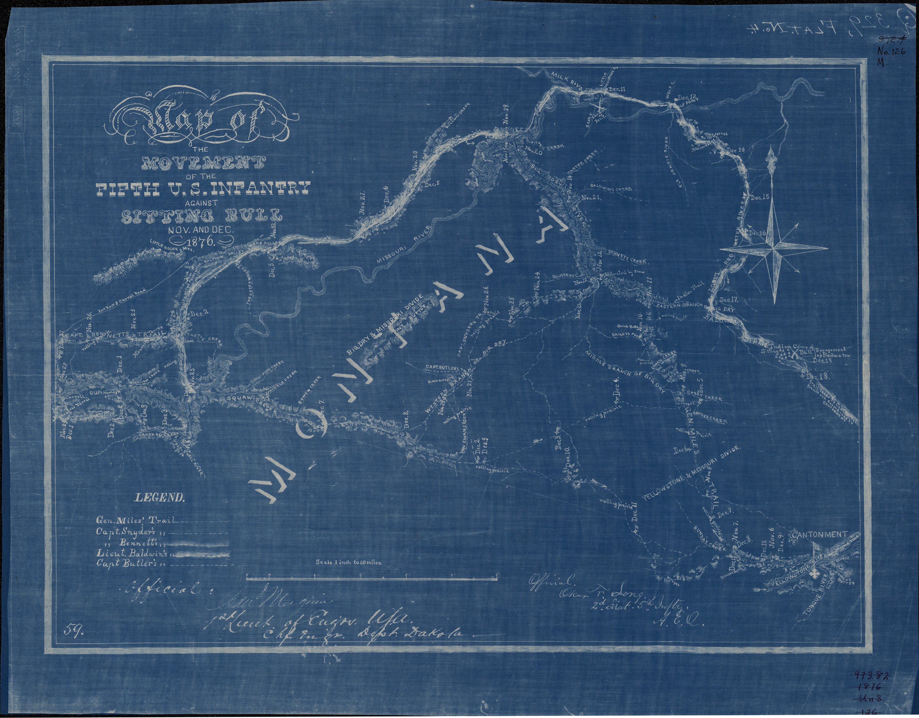 Map of the movements of the Fifth U.S. Infantry against Sitting Bull, Nov. and Dec. 1876