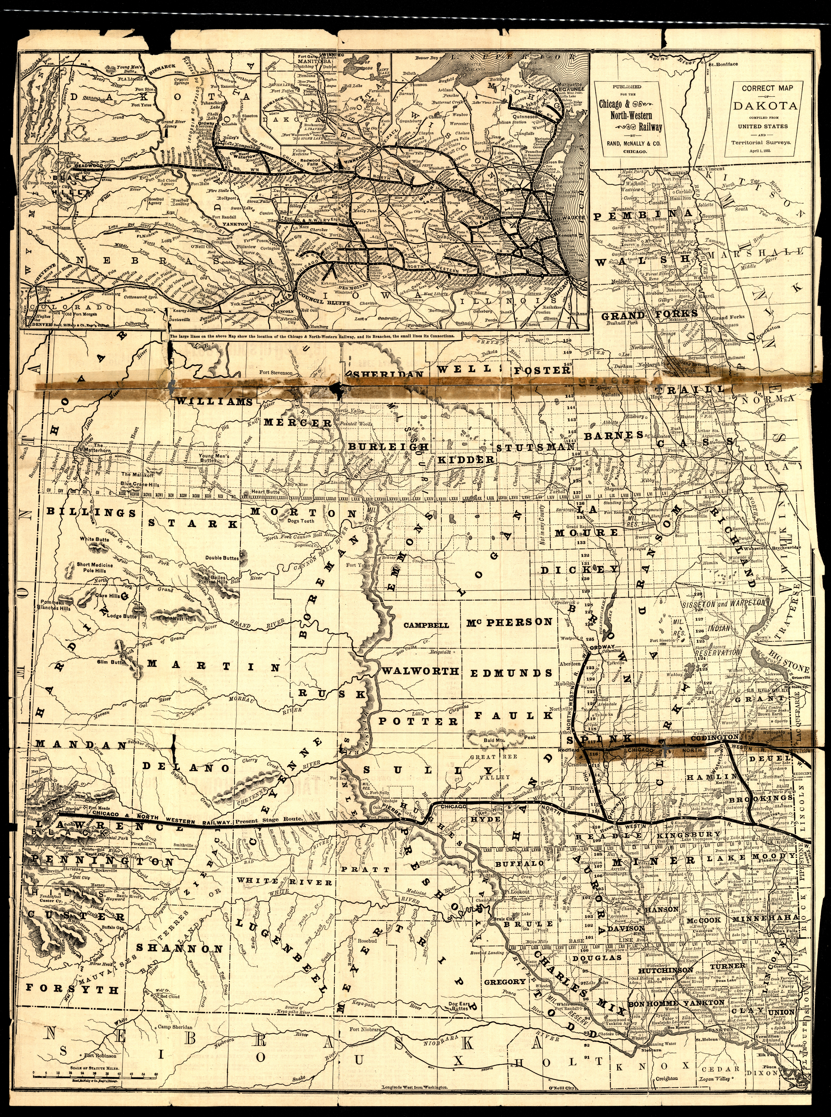 Collection: 978.402 R186c 1882 - Correct map of Dakota compiled from United States and Territorial surveys April 1, 1882 / __ __published for the Chicago & North-Western Railway by Rand, McNally & Co