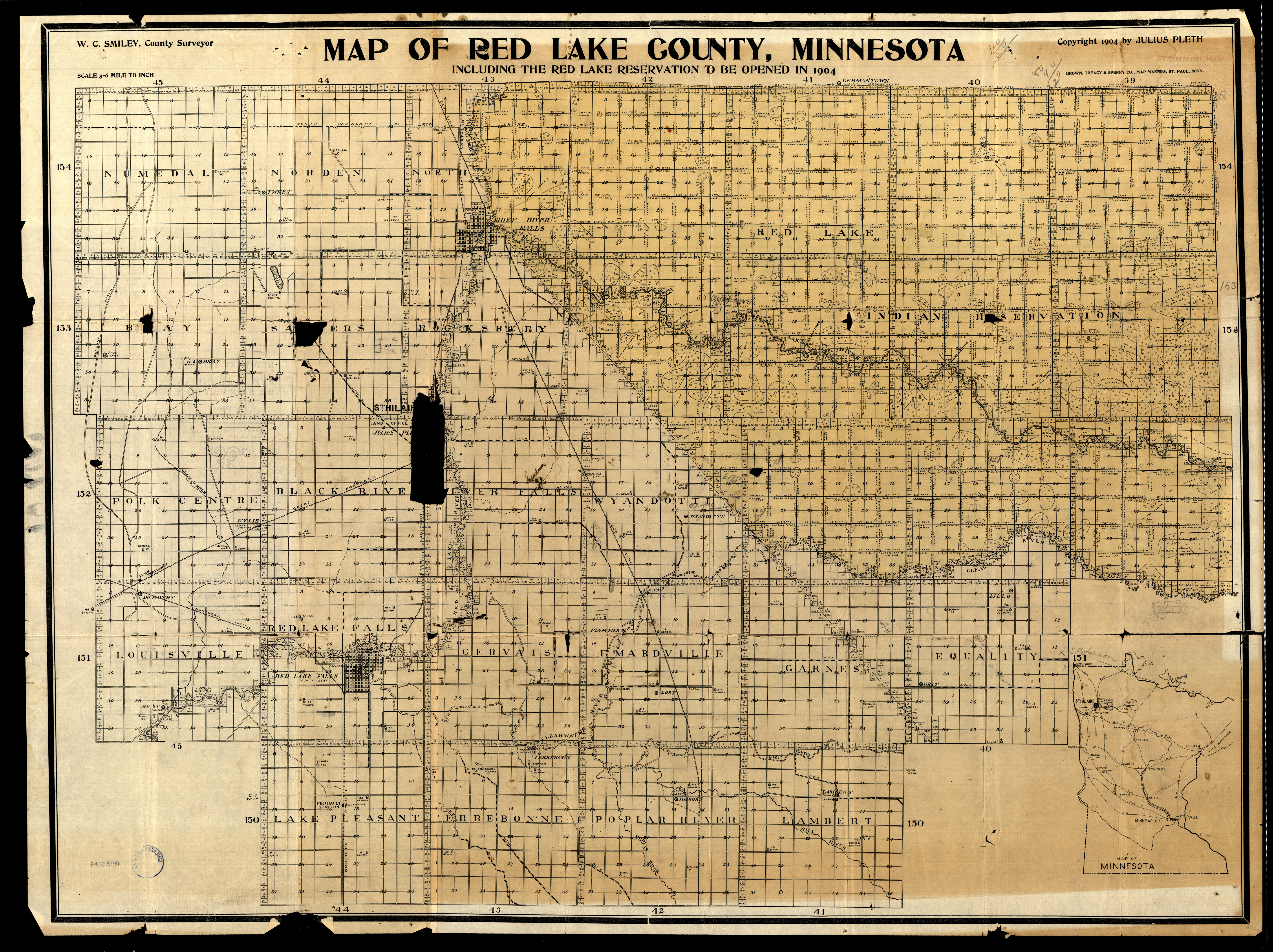 Collection: 977.6963 S6412m 1904 - Map of Red Lake County, Minnesota : __including the Red Lake Reservation to be opened in 1904 / __W.C. Smiley, County Surveyor