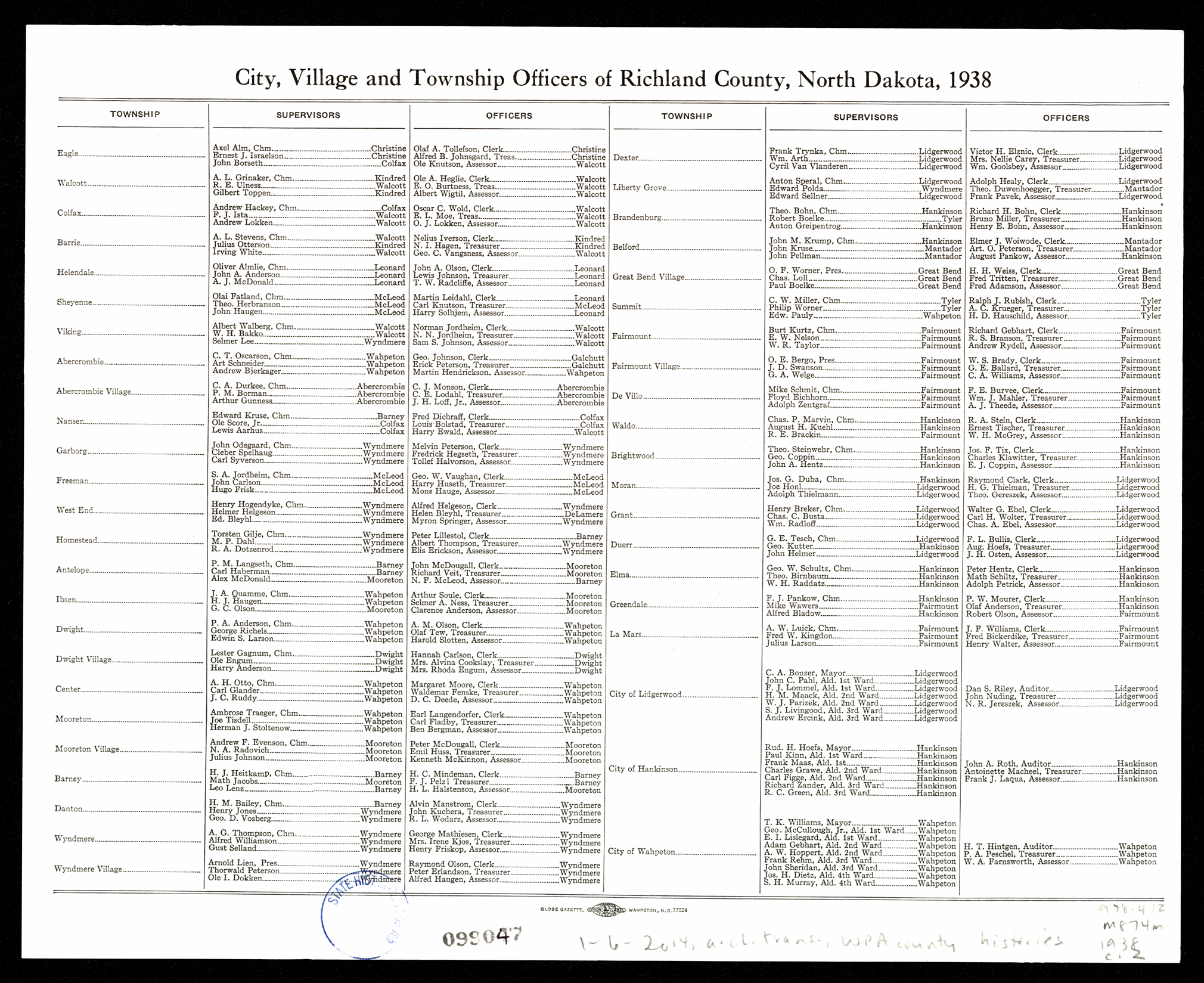 Collection: 978.412 M874m 1938 - Map of Richland Co., North Dakota / __ __E.K. Morrill