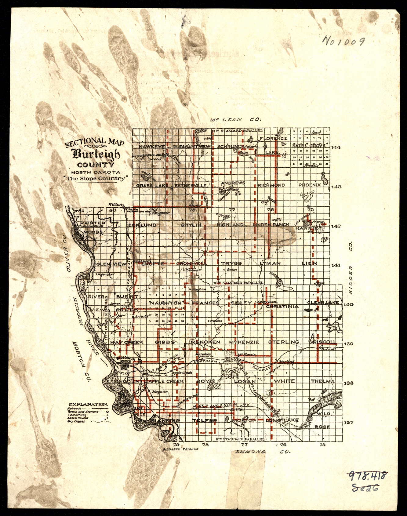 Collection: 978.477 S4465 1907 - Sectional map of Burleigh County North Dakota : __the slope country