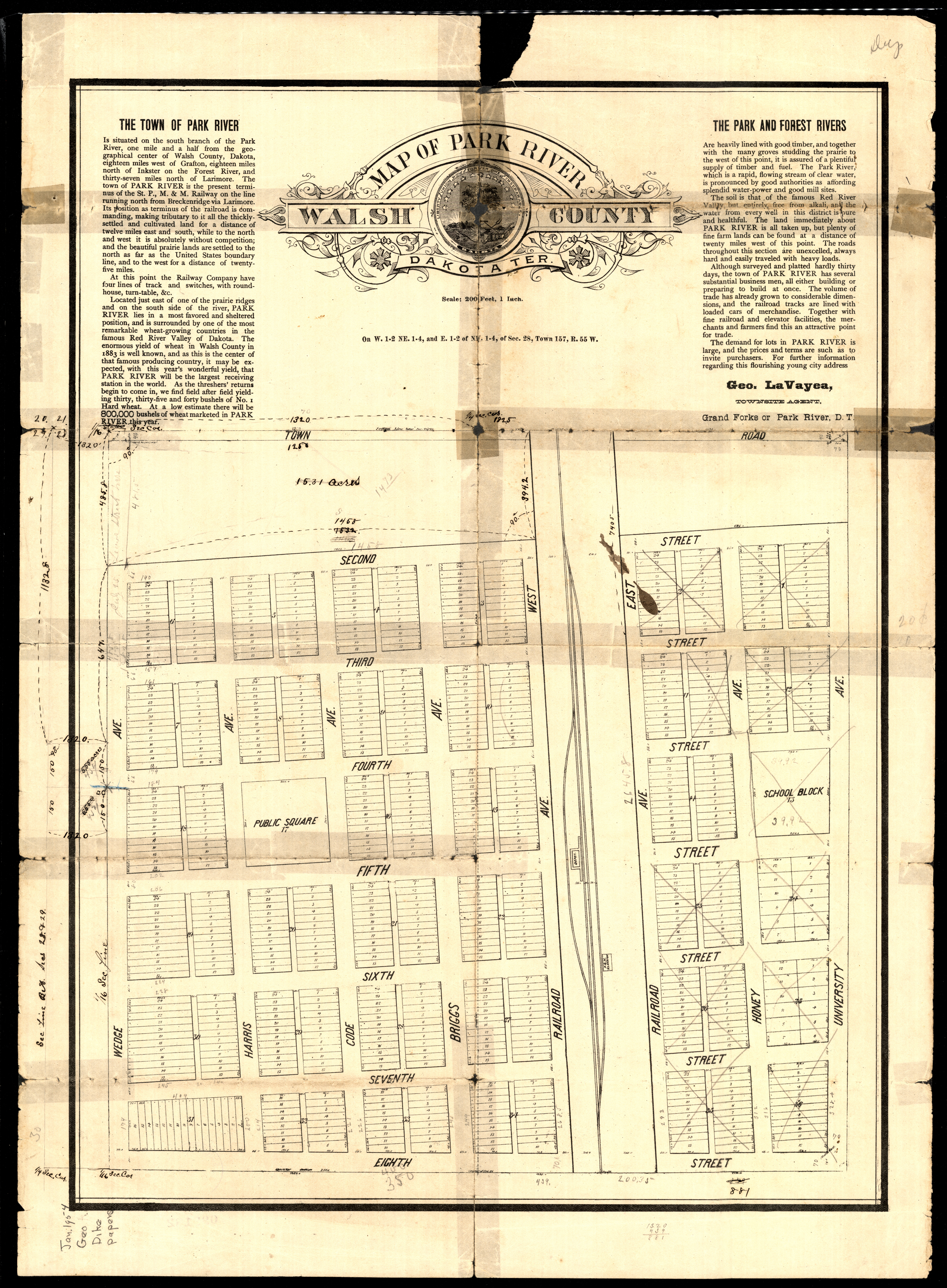 Collection: 978.418 P219m 1884 - Map of Park River, Walsh County, Dakota Ter