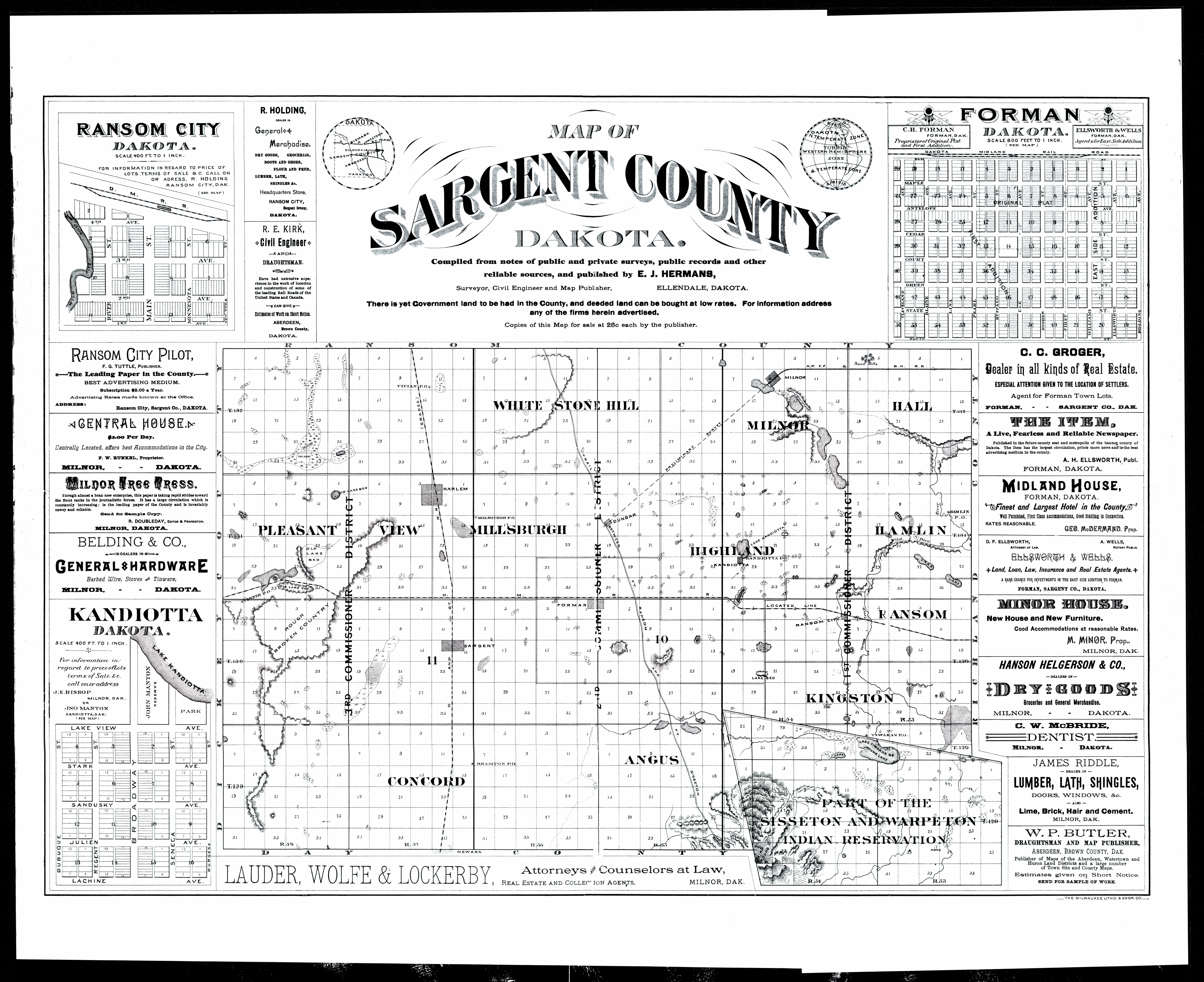 Collection: 978.4314 H5528m - Map of Sargent County, Dakota / __ __compiled from notes of public and private sureys, public records and other reliable sources, and published by E.J. Hermans