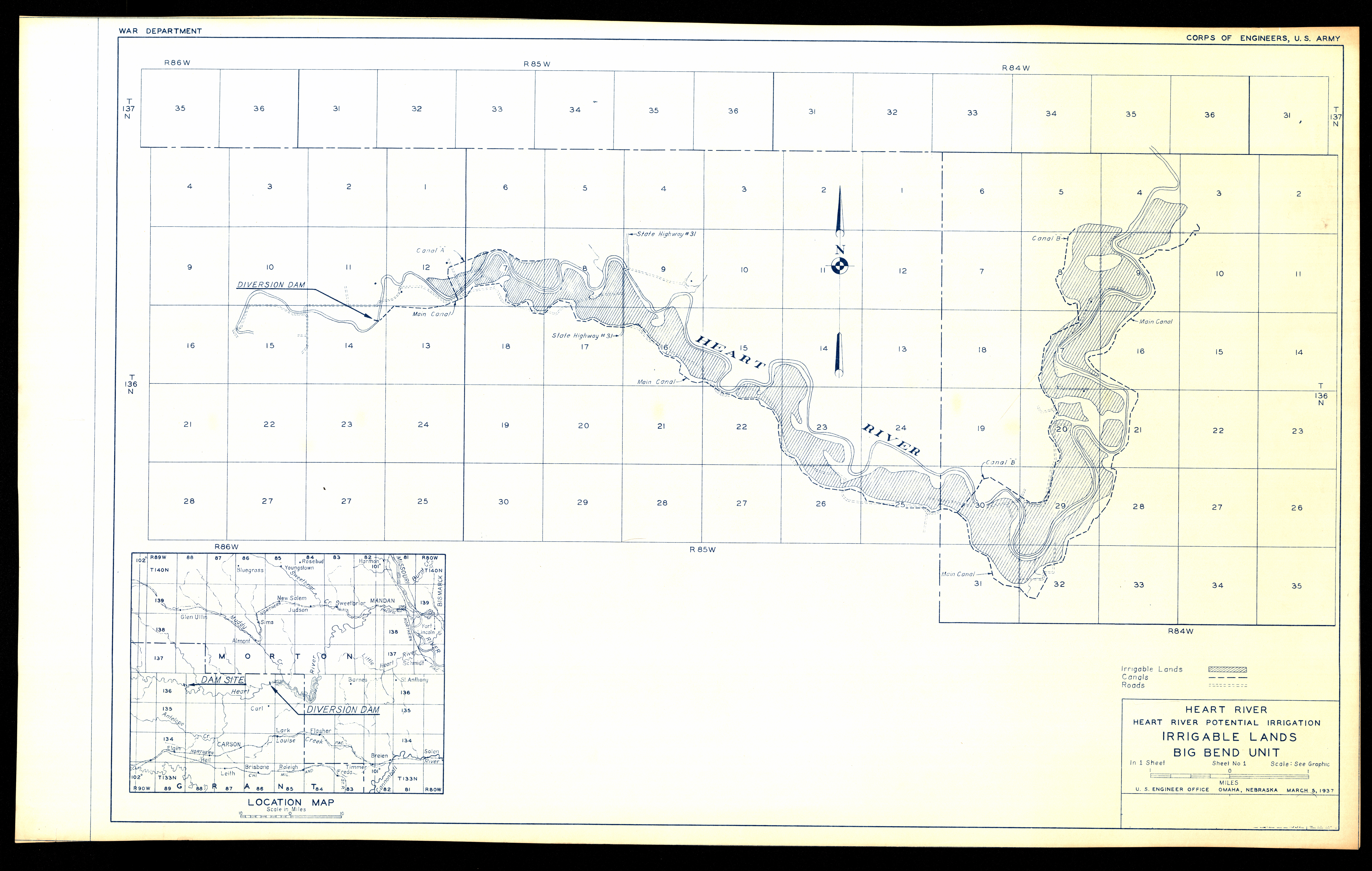 Collection: 333.913 U5813hb 1937 - Heart River potential irrigation : __irrigable lands, Big Bend Unit / __U.S. Engineer Office, Omaha Nebraska