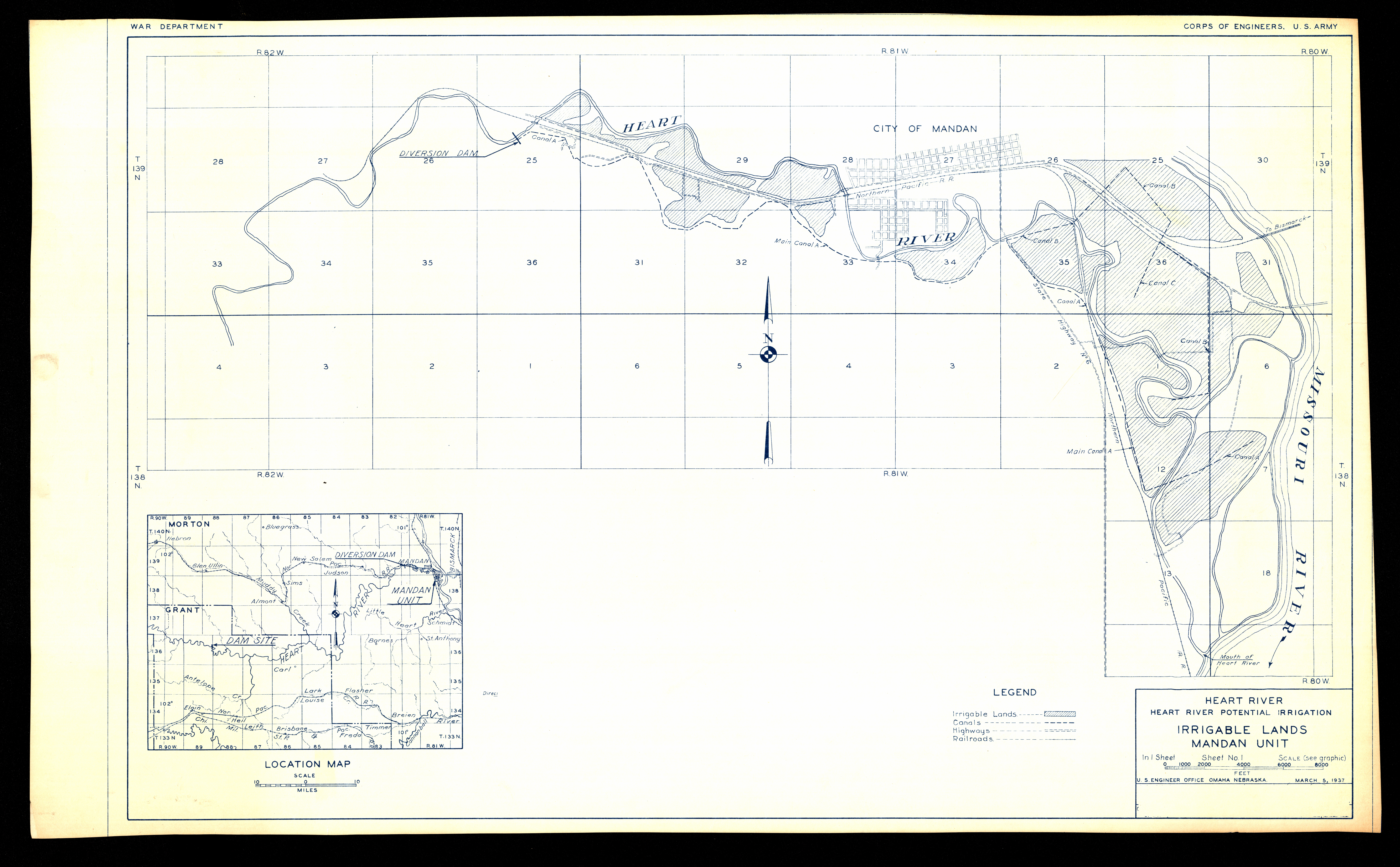Collection: 333.913 U5813hm 1937 - Heart River potential irrigation : __irrigable lands, Mandan Unit / __U.S. Engineer Office, Omaha Nebraska