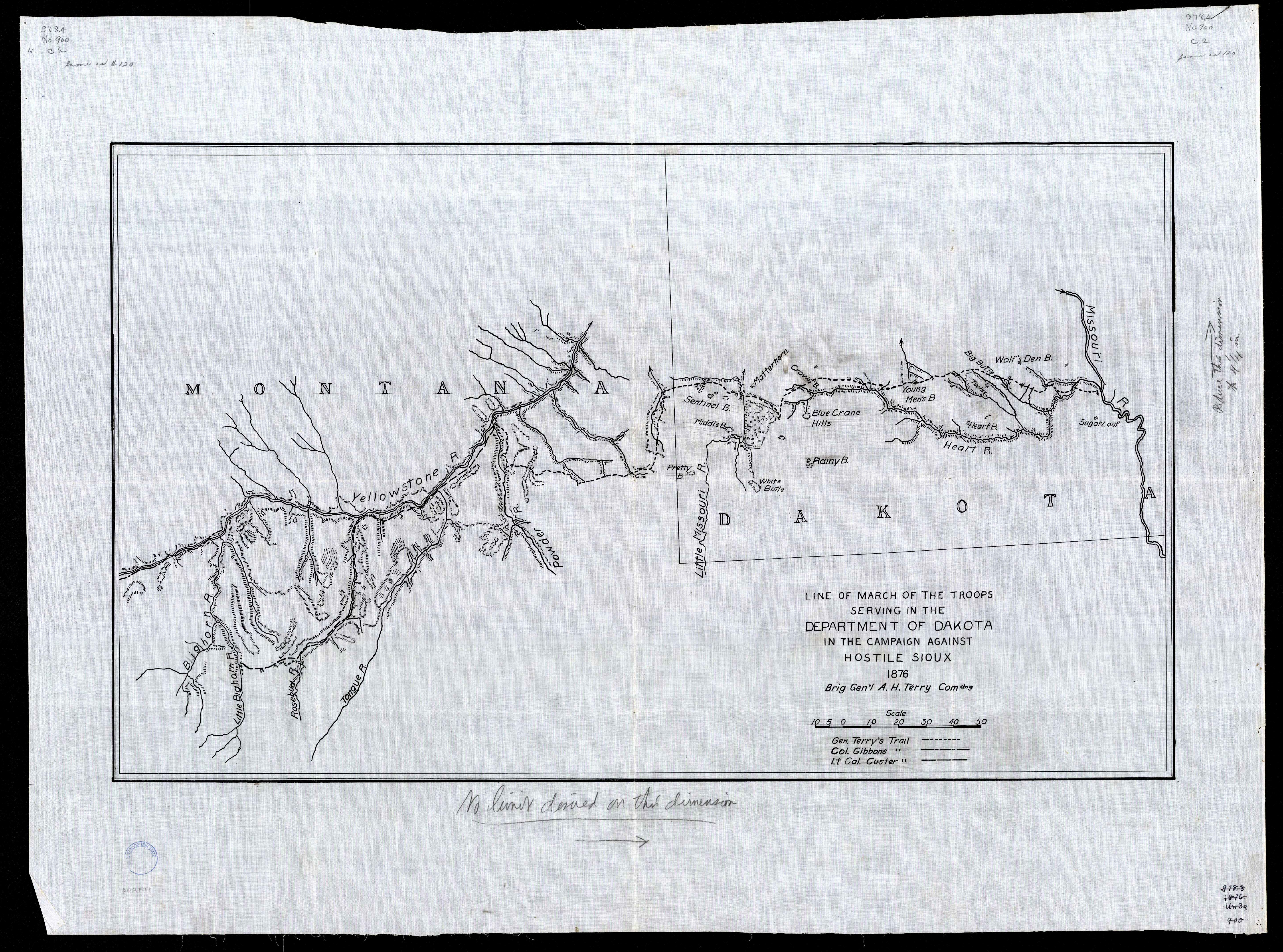 Collection: 973.82 M213L - Line of march of the troops serving in the Department of Dakota in the campaign against hostile Sioux / __ __Brig. Gen'l A.H. Terry Commdng