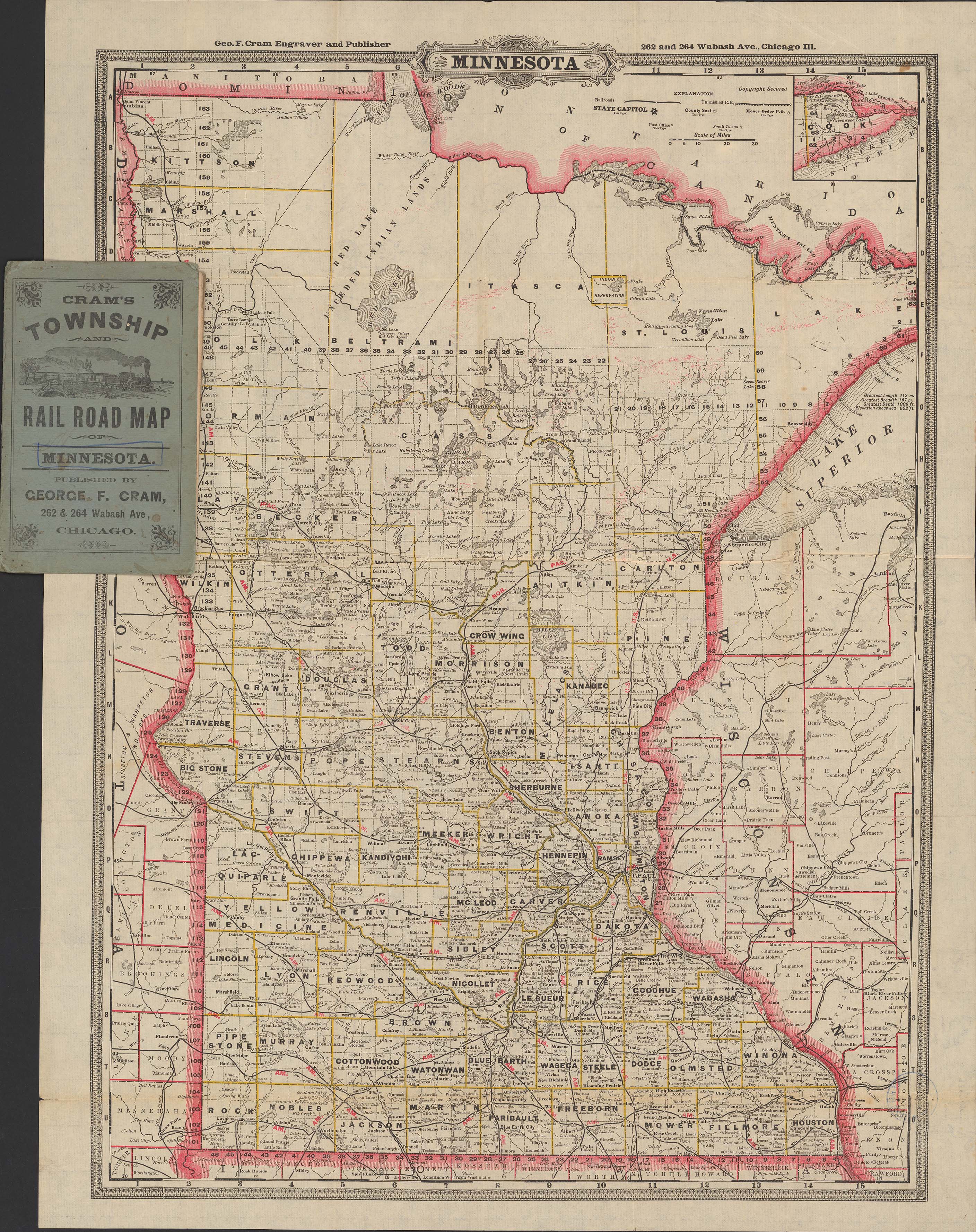 Collection: 977.604 C889c - Cram's township and rail road map of Minnesota