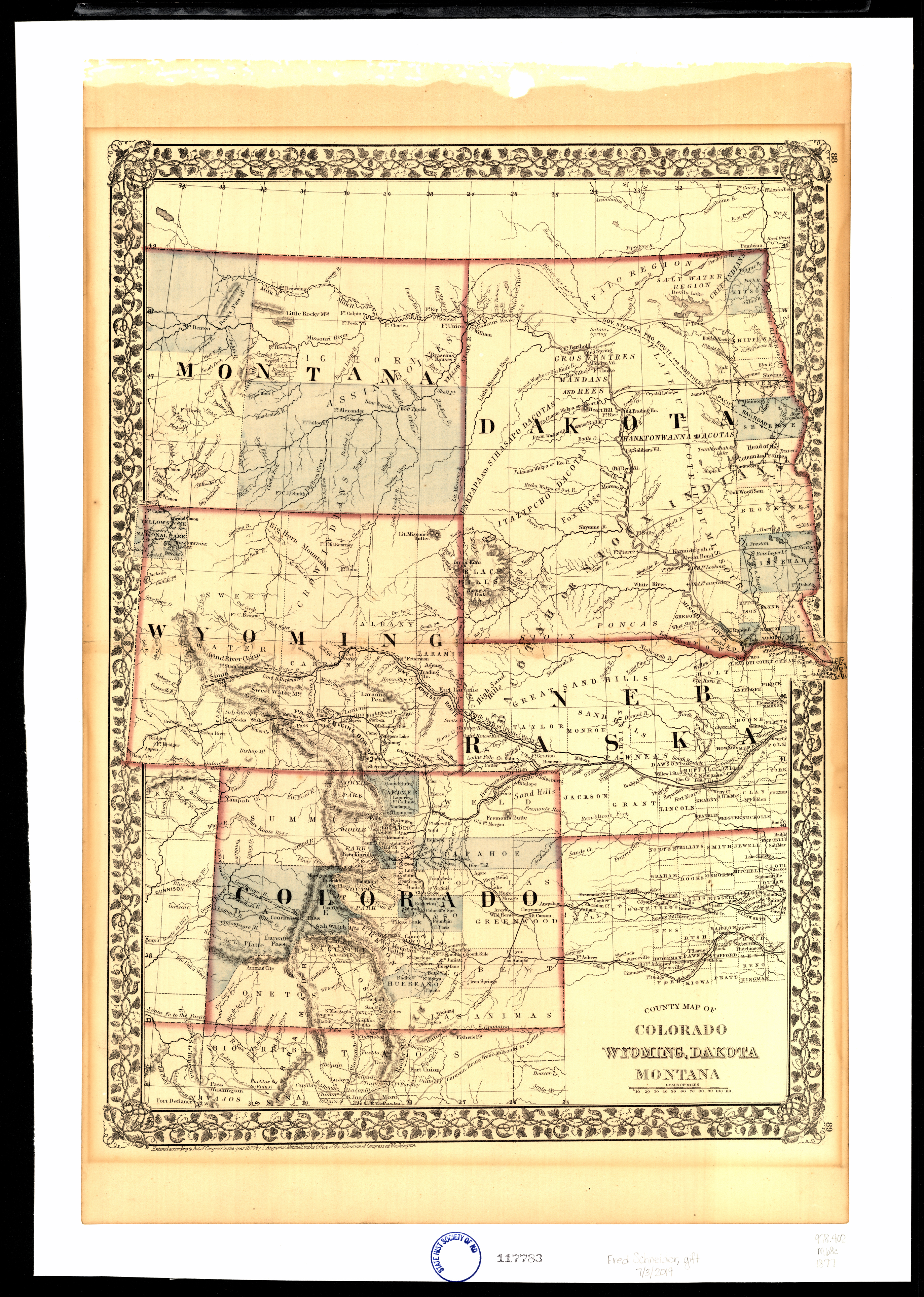 Collection: 978.402 M68c 1877 - County map of Colorado, Wyoming, Dakota, Montana