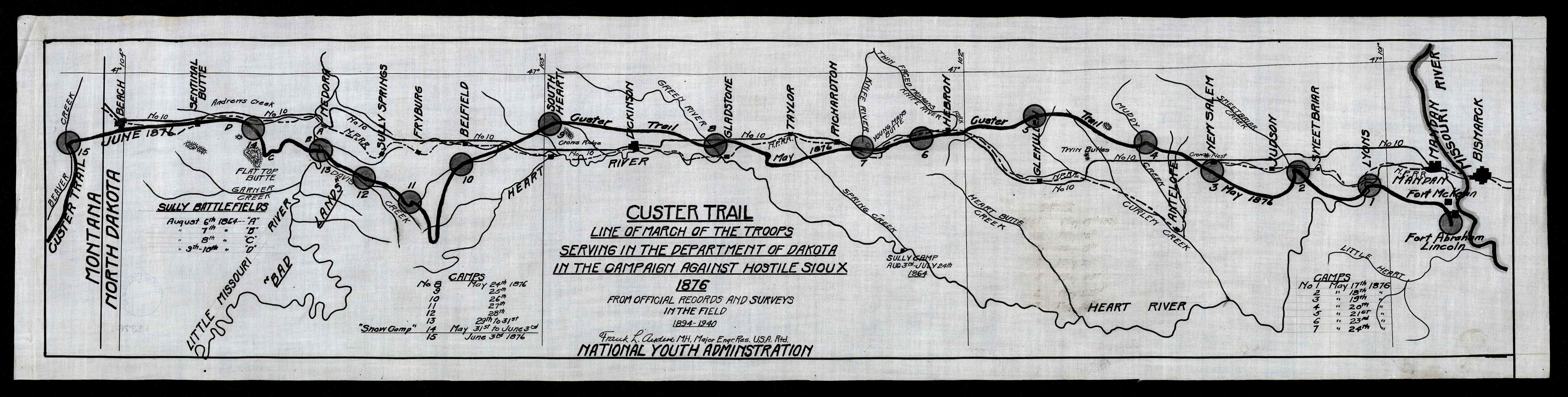 Custer trail : __line of march of the troops serving in the Department of Dakota in the campaign against hostile Sioux, 1876 from official records and surveys in the field, 1894-1940 / __Frank L. Anders