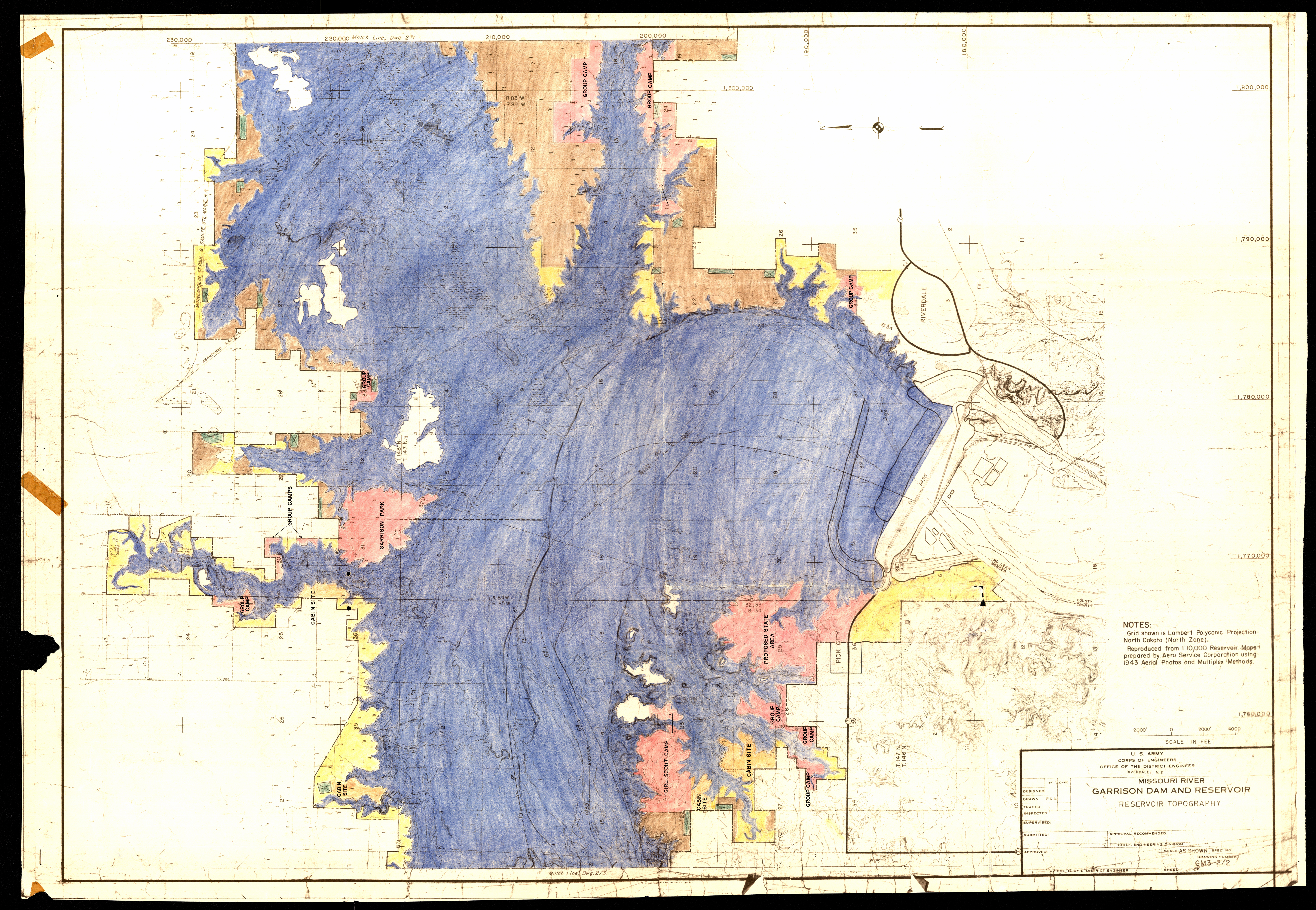 Collection: 333.91 U5813m - Missouri River, Garrison Dam and Reservoir : __reservoir topography / __U.S. Army, Corps of Engineers, Office of the District Engineer