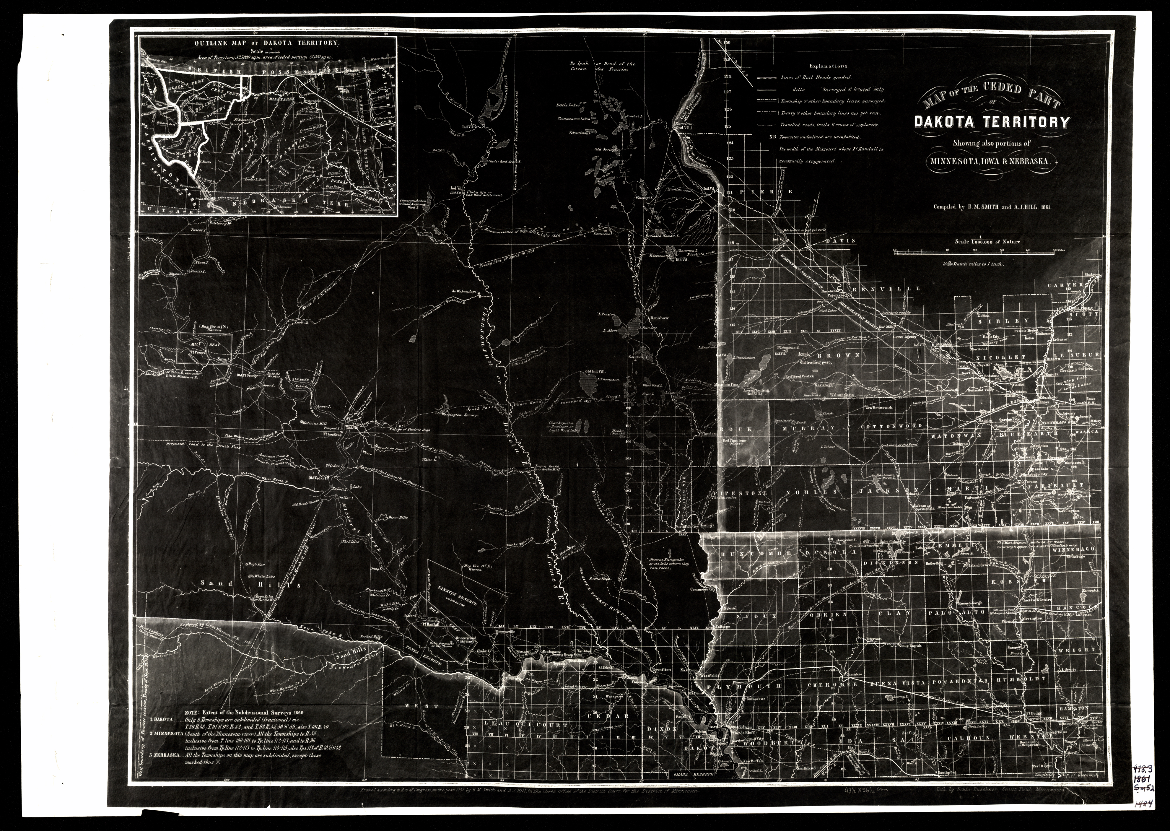 Map of the ceded part of Dakota Territory : __showing also portions of Minnesota, Iowa & Nebraska / __compiled by B.M. Smith and A.J. Hill, 1861