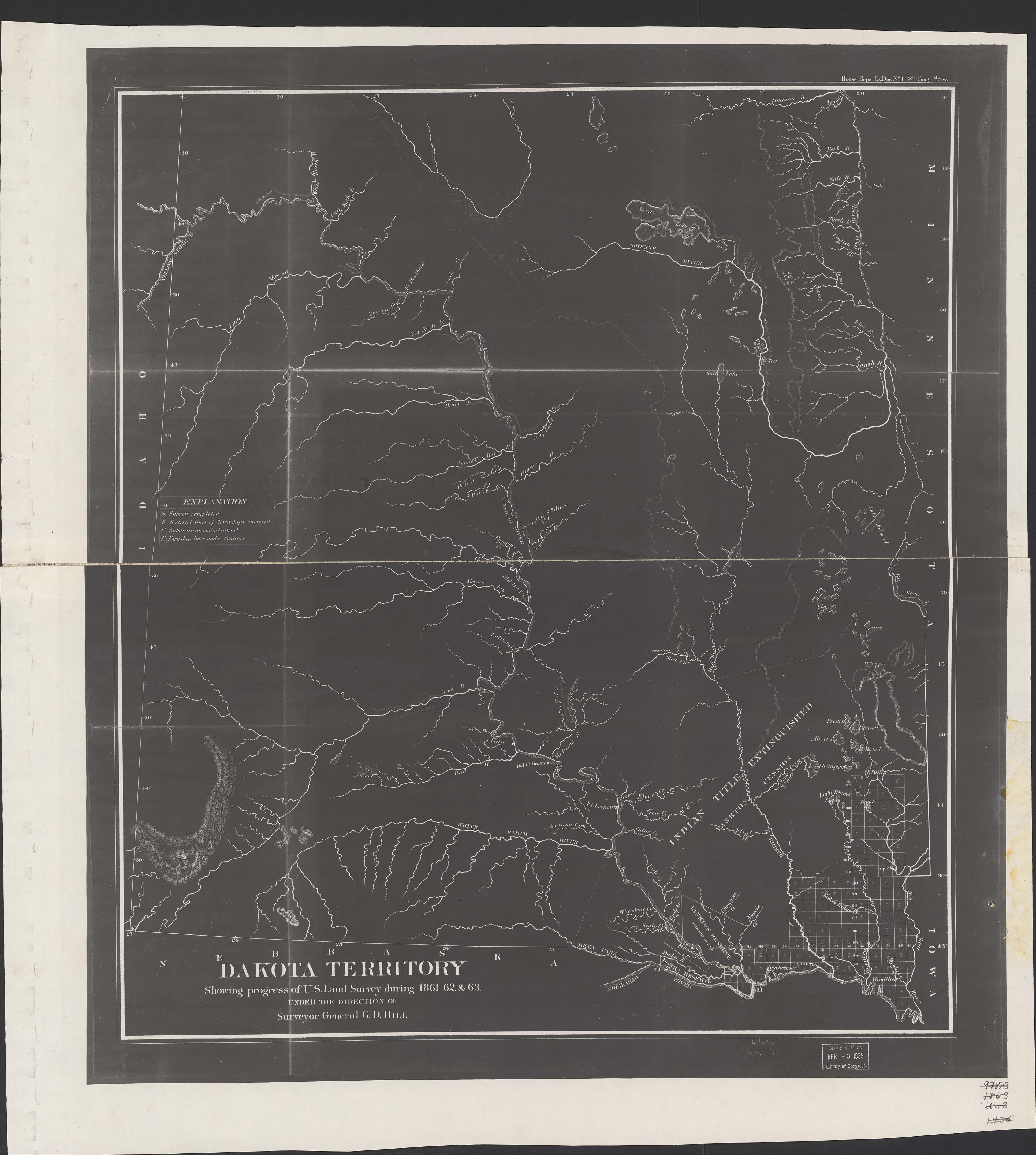 Collection: 978.402 H645d 1863 - Dakota Territory showing progress of U.S. land survey during 1861, 62 & 63 / __ __under the direction of Surveyor General G.D. Hill