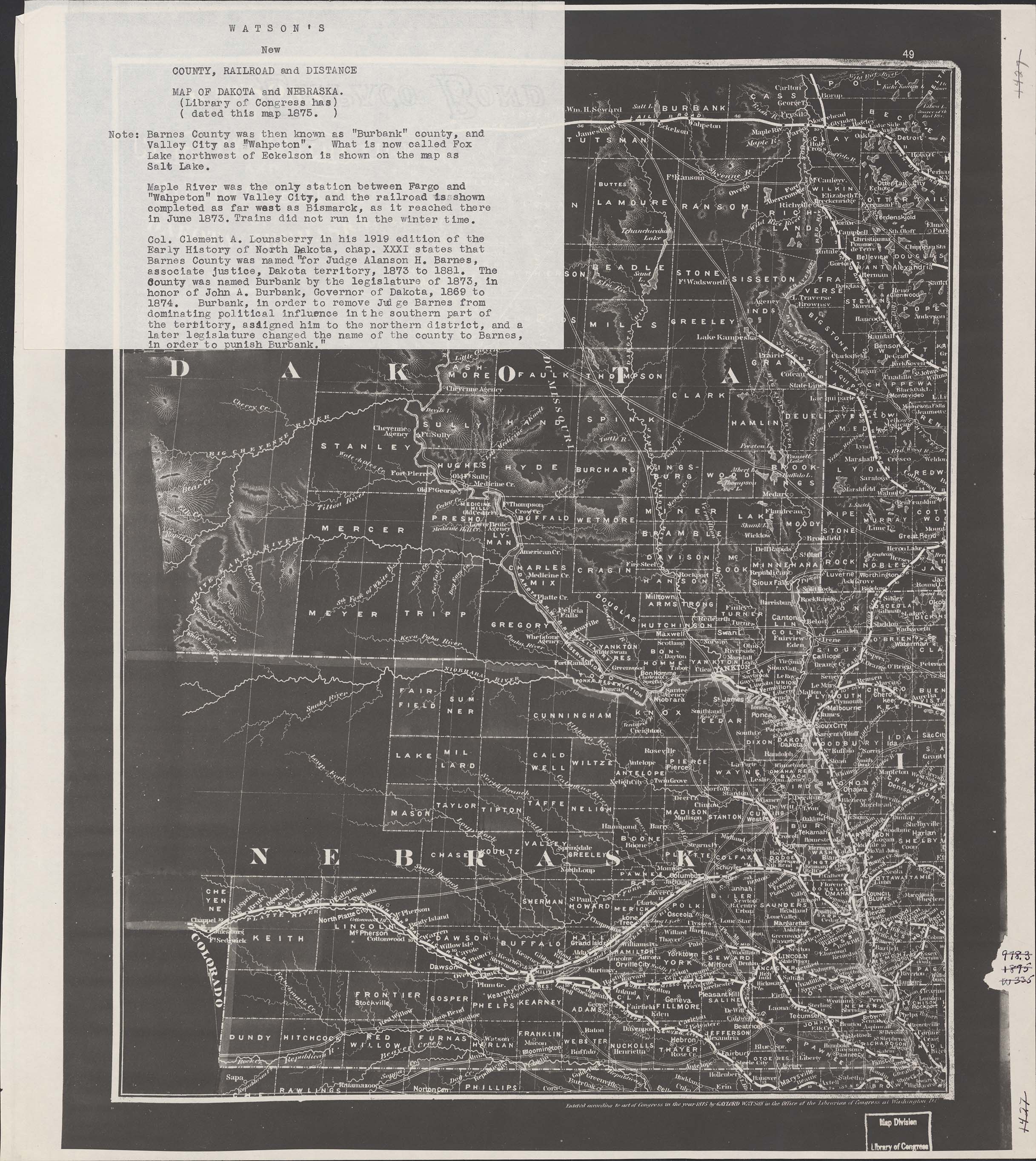 Collection: 978.02 W337w 1875 - Watson's new county, railroad and distance map of Dakota and Nebraska / __ __Gaylord Watson