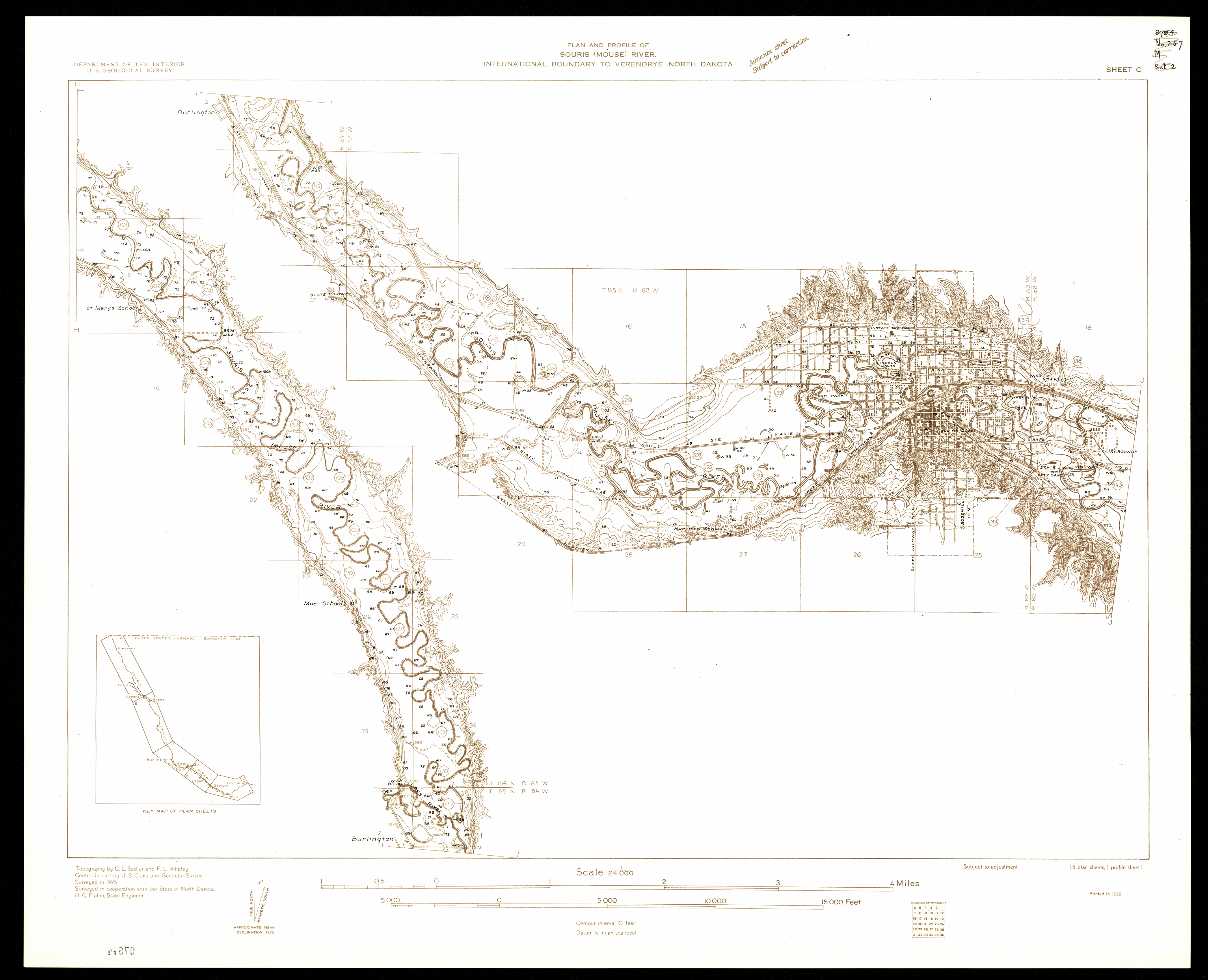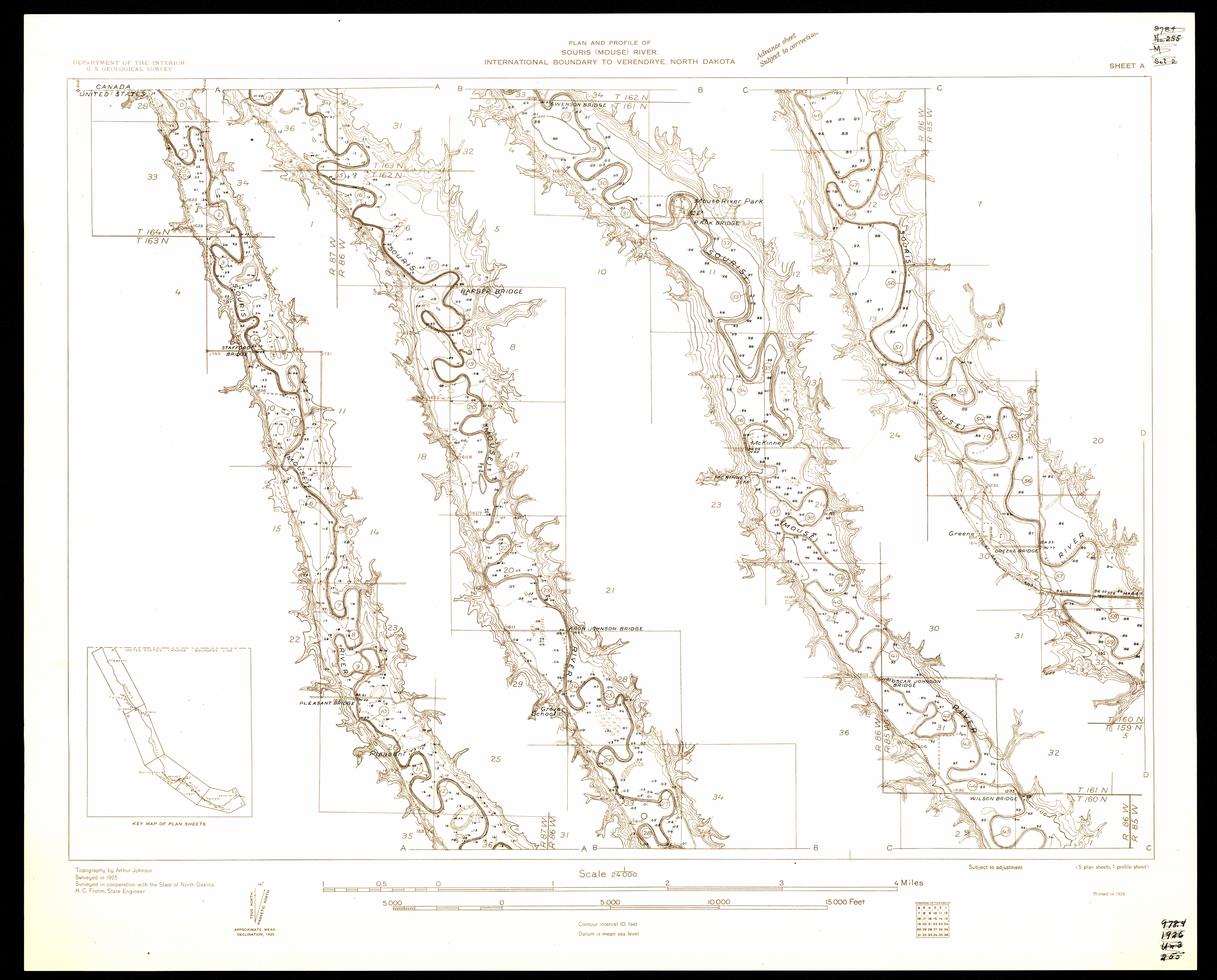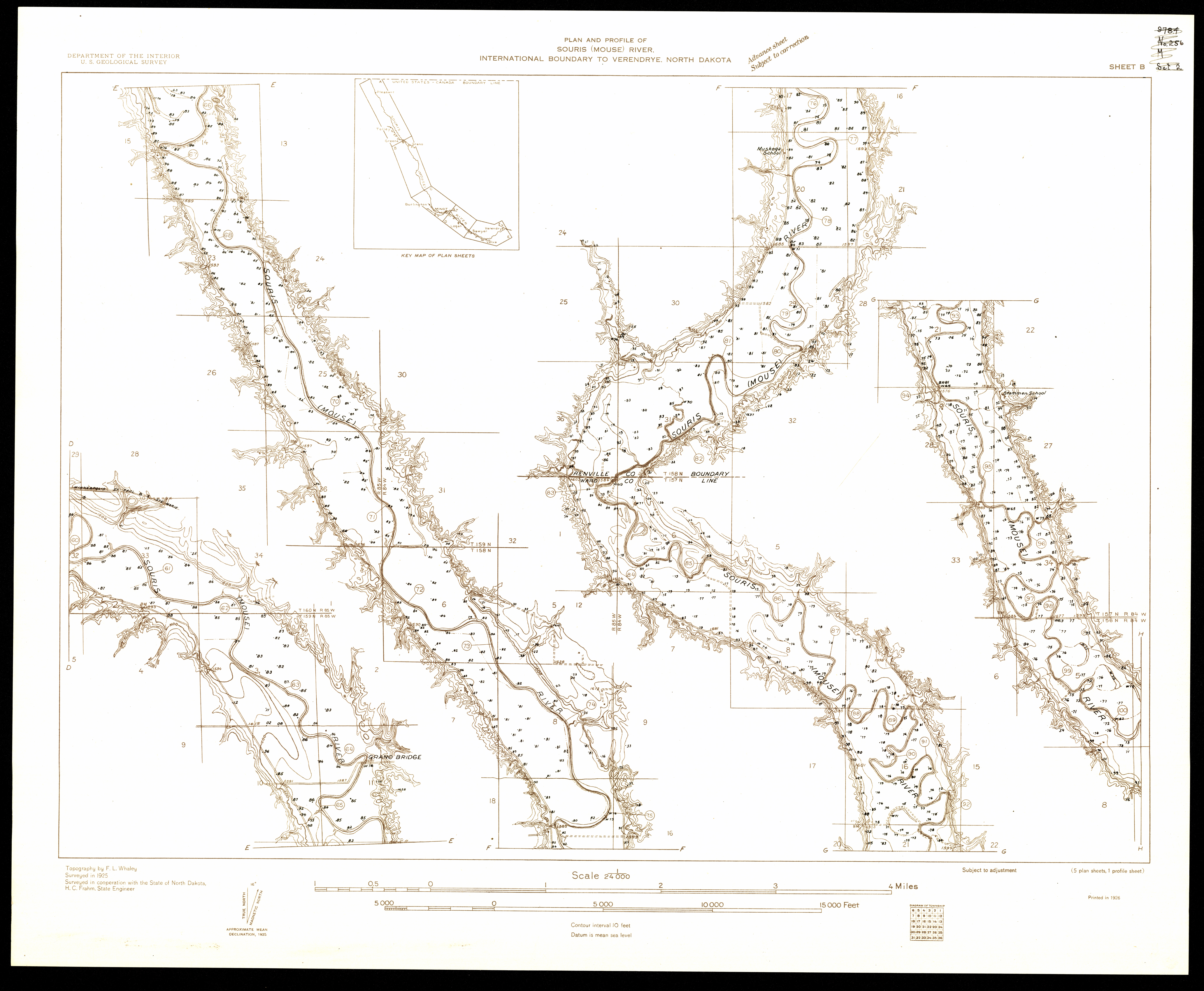 Title: Plan and profile of Souris (Mouse) River, international boundary to Verendrye, North Dakota / __ __U.S. Geological Survey, surveyed in cooperation with the state of North Dakota