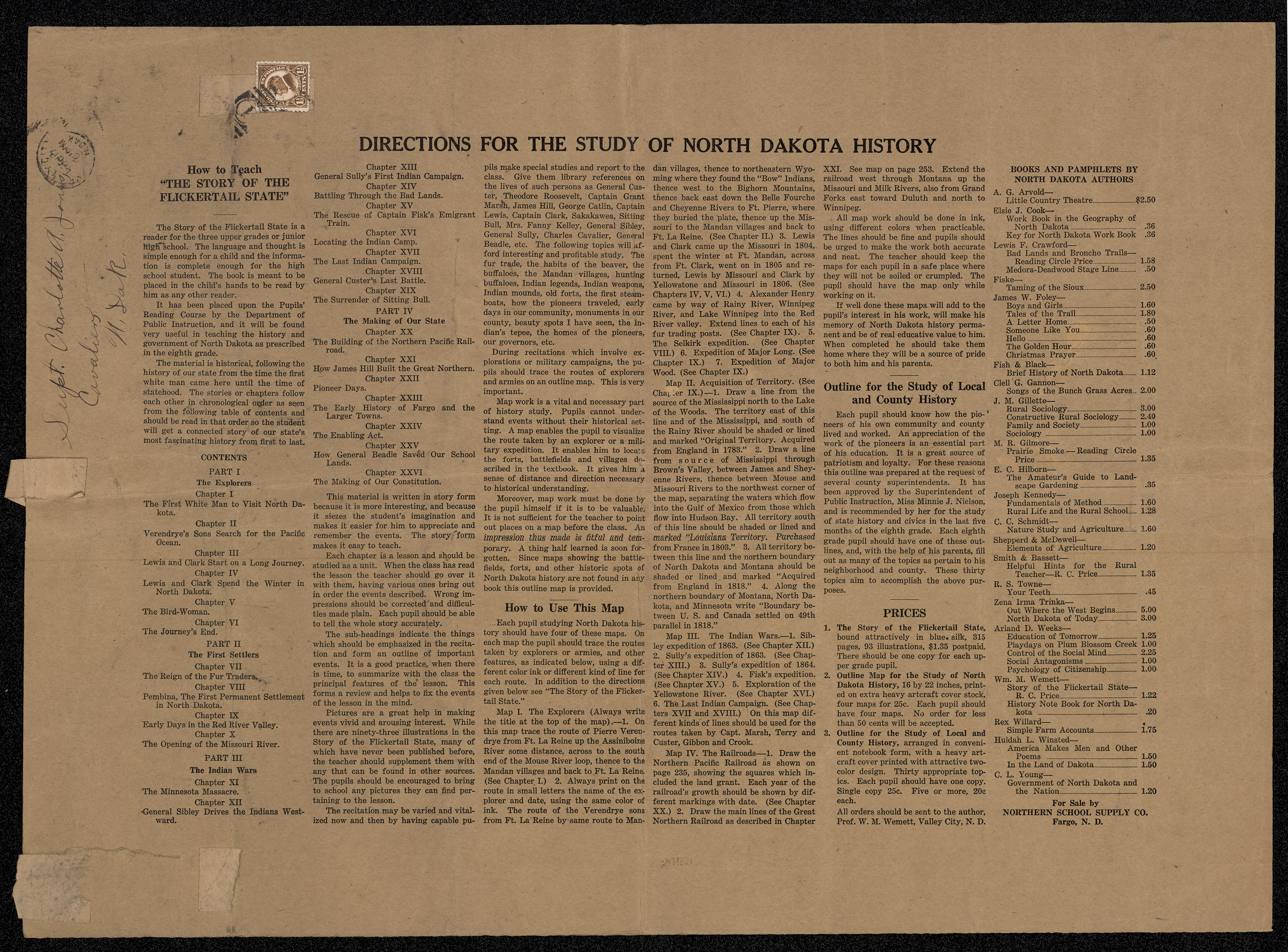 Title: Outline map for the study of North Dakota history / __ __by W.M. Wemett