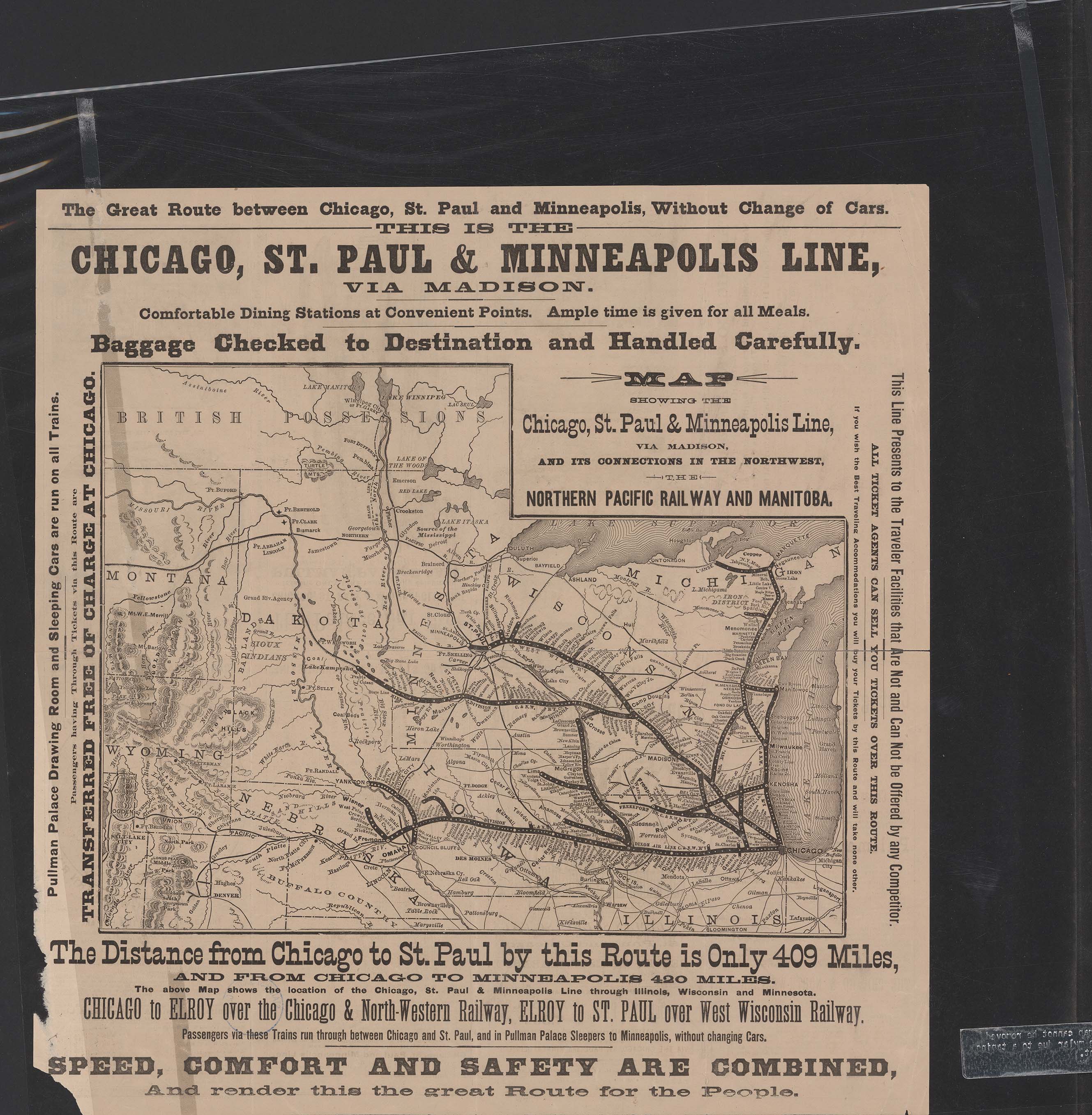 Title: Map showing the Chicago, St. Paul & Minneapolis Line, via Madison, and its connections in the Northwest, the Northern Pacific Railway and Manitoba