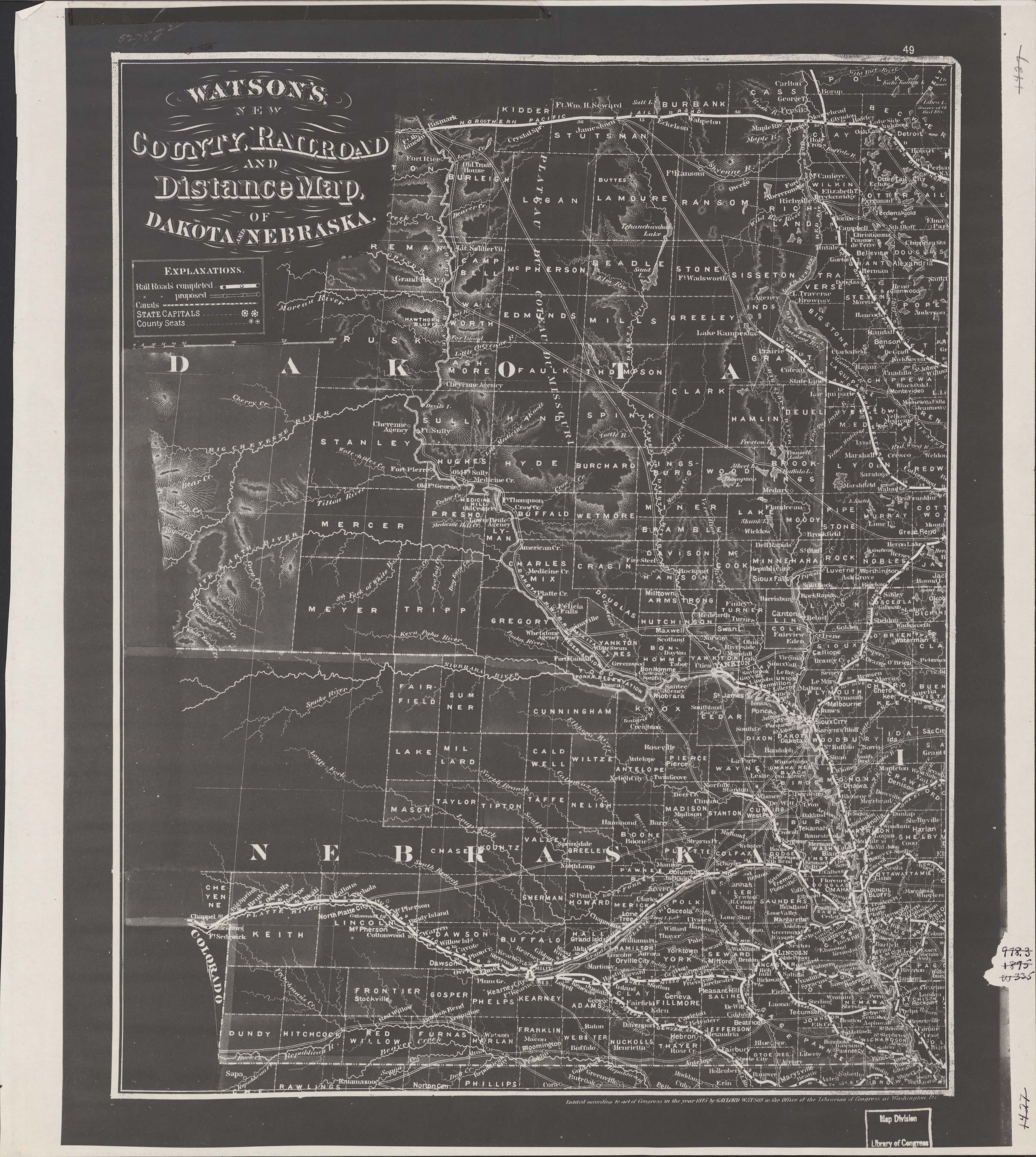 Title: Watson's new county, railroad and distance map of Dakota and Nebraska / __ __Gaylord Watson