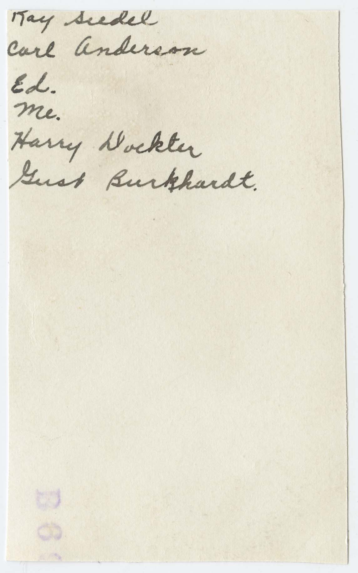 Title: Ray Siedel Carl Anderson Edwin Stienward Rudy Hummel Harry Dockter Gust Burkhardt Civilian Conservation Corp CCC 1934