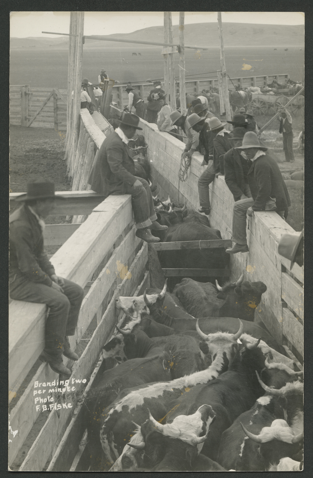 Inscription/Marks: [handwritten in red gouache on negative] Branding cattle two per minute at Standing Rock Agency Photo by Fiske Branding cattle two per minute Photo F. B. Fiske [Handwritten in ink on negative] Fiske @1931