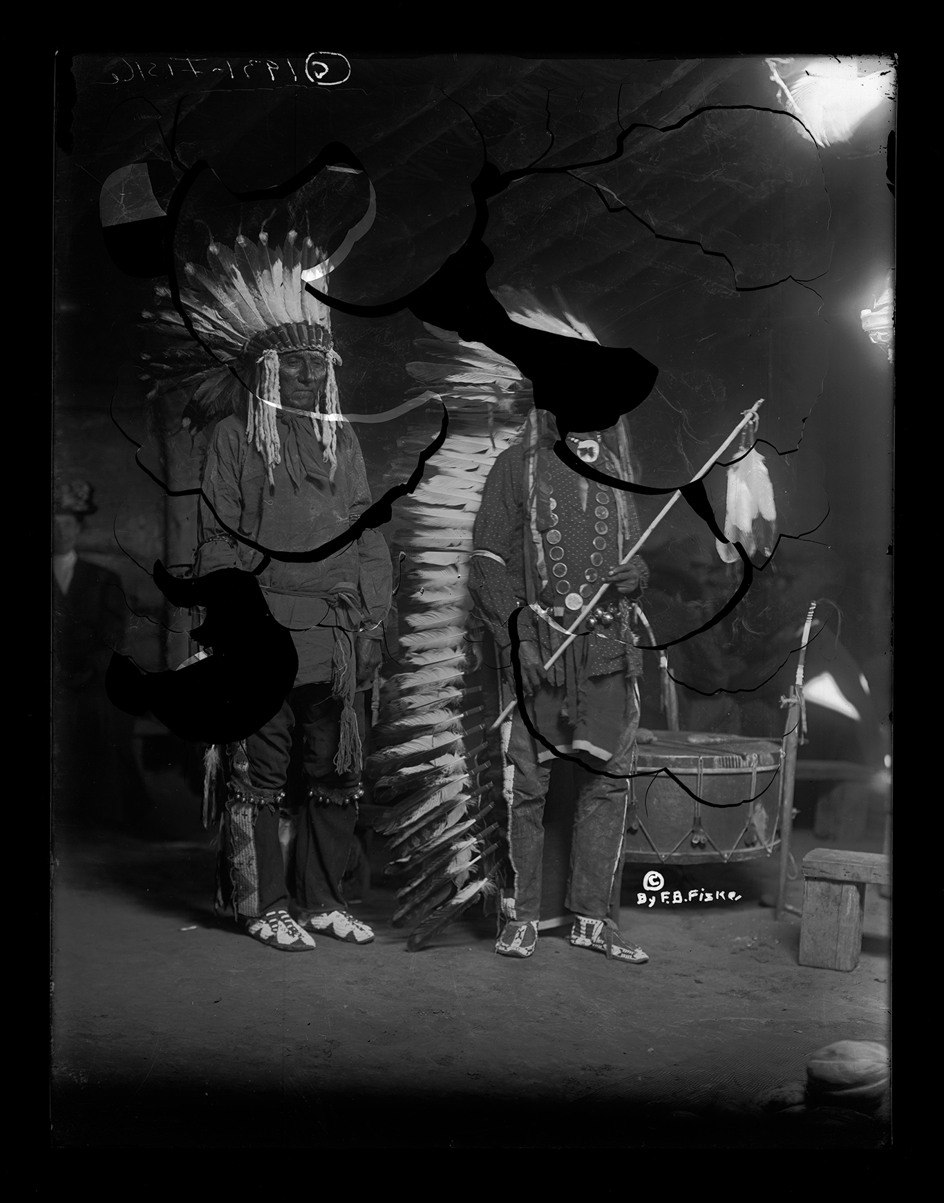 Summary: Includes prints and negatives of portraits, agriculture, education, wildlife, hunting, Frank Fiske studio portraits, and some views of South Dakota. Fiske’s Native American photographs include portraits, Indian gatherings and ceremonies, boarding schools, Indian houses and dwellings, and Native American agriculture. Fiske’s documentation of daily life on the reservation includes such shots as Sioux customers waiting for a Fort Yates trading store to open; a Sioux dance in the streets of Fort Yates; a plow issue before the agency boarding school; an encampment of tipis, including those traditionally painted; and three Indian men being taxied off the reservation to join the army in WWI.