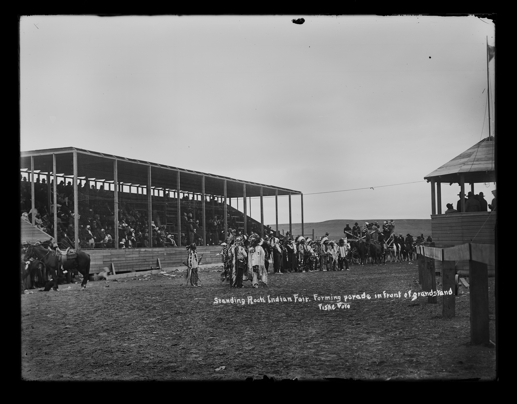 Title: "Standing Rock Indian Fair. Forming parade in front of grandstand"