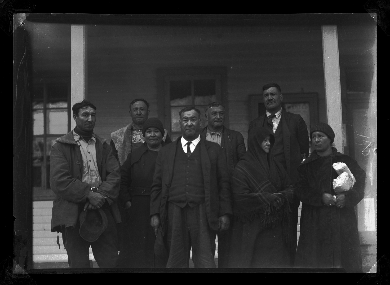 Summary: Includes prints and negatives of portraits, agriculture, education, wildlife, hunting, Frank Fiske studio portraits, and some views of South Dakota. Fiske’s Native American photographs include portraits, Indian gatherings and ceremonies, boarding schools, Indian houses and dwellings, and Native American agriculture. Fiske’s documentation of daily life on the reservation includes such shots as Sioux customers waiting for a Fort Yates trading store to open; a Sioux dance in the streets of Fort Yates; a plow issue before the agency boarding school; an encampment of tipis, including those traditionally painted; and three Indian men being taxied off the reservation to join the army in WWI.
