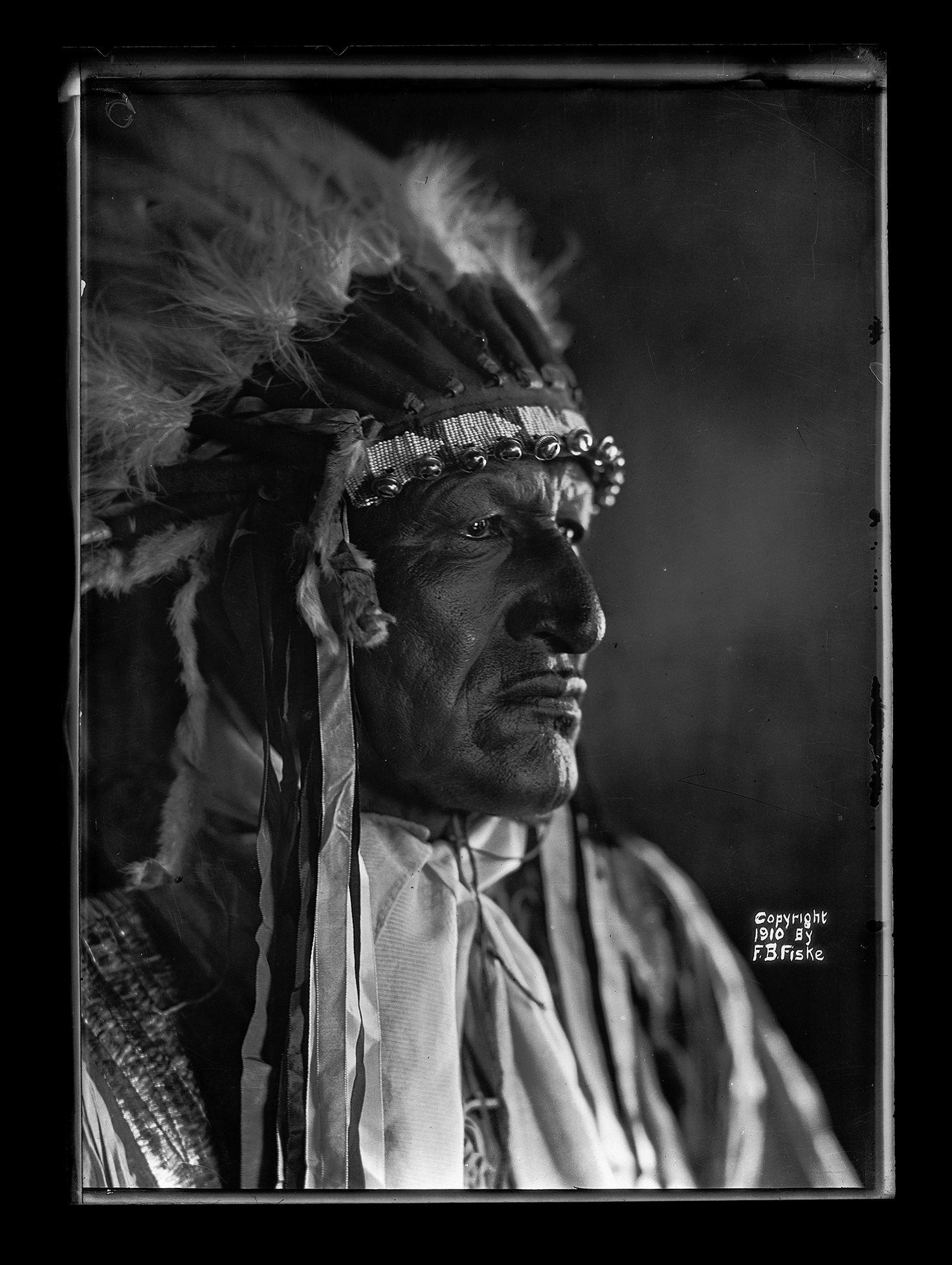 Summary: Includes prints and negatives of portraits, agriculture, education, wildlife, hunting, Frank Fiske studio portraits, and some views of South Dakota. Fiske’s Native American photographs include portraits, Indian gatherings and ceremonies, boarding schools, Indian houses and dwellings, and Native American agriculture. Fiske’s documentation of daily life on the reservation includes such shots as Sioux customers waiting for a Fort Yates trading store to open; a Sioux dance in the streets of Fort Yates; a plow issue before the agency boarding school; an encampment of tipis, including those traditionally painted; and three Indian men being taxied off the reservation to join the army in WWI.